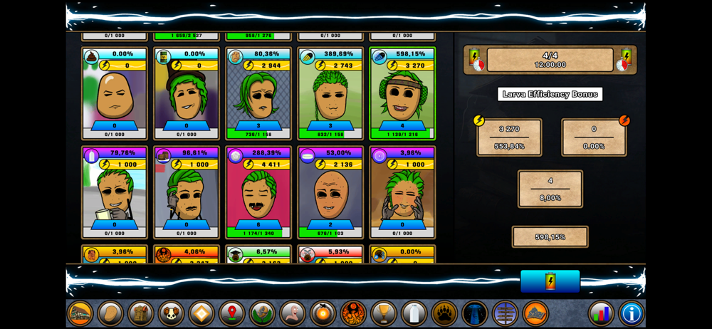 This idle game is easily one of the better ones I’ve played, out of the few dozen or so I’ve tried. There’s always something to be chipping away at, whether it’s increasing basic stats, skill farming, playing the minigame, or even doing the more in depth side stuff like the farm or the worms. And, arguably most importantly: THERE ARE NO RANDOM ADS. Almost any sort of “But this part isn’t as good/polished/deep as I want it to be yet!” Is one that I can easily look past by realizing that this game is actively putting the player’s interest first. I can sit here for thirty minutes and just ACTIVELY play this IDLE game. The fact that I can do that with no interruptions is stupefyingly good. The only true critique I could levy against this game is the lack of easily accessible and plainly readable information (as in, perhaps, being able to tap and hold an icon to see what something is or does). You instead have to tap on the blue circle i icon in the bottom right, which has a more in depth explanation- which is still a relatively good thing, as it tells you in full what the deal with something is. Well and truly, one of the best idle games I’ve come across.