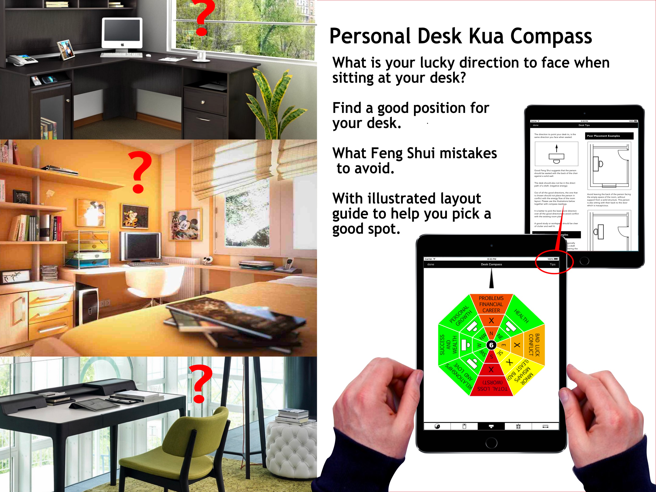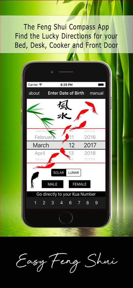 A Feng Shui Compass in your iPhone or iPad. Use this Feng Shui Compass App to Calculate your Life Kua number and get your Lucky Directions. This App...