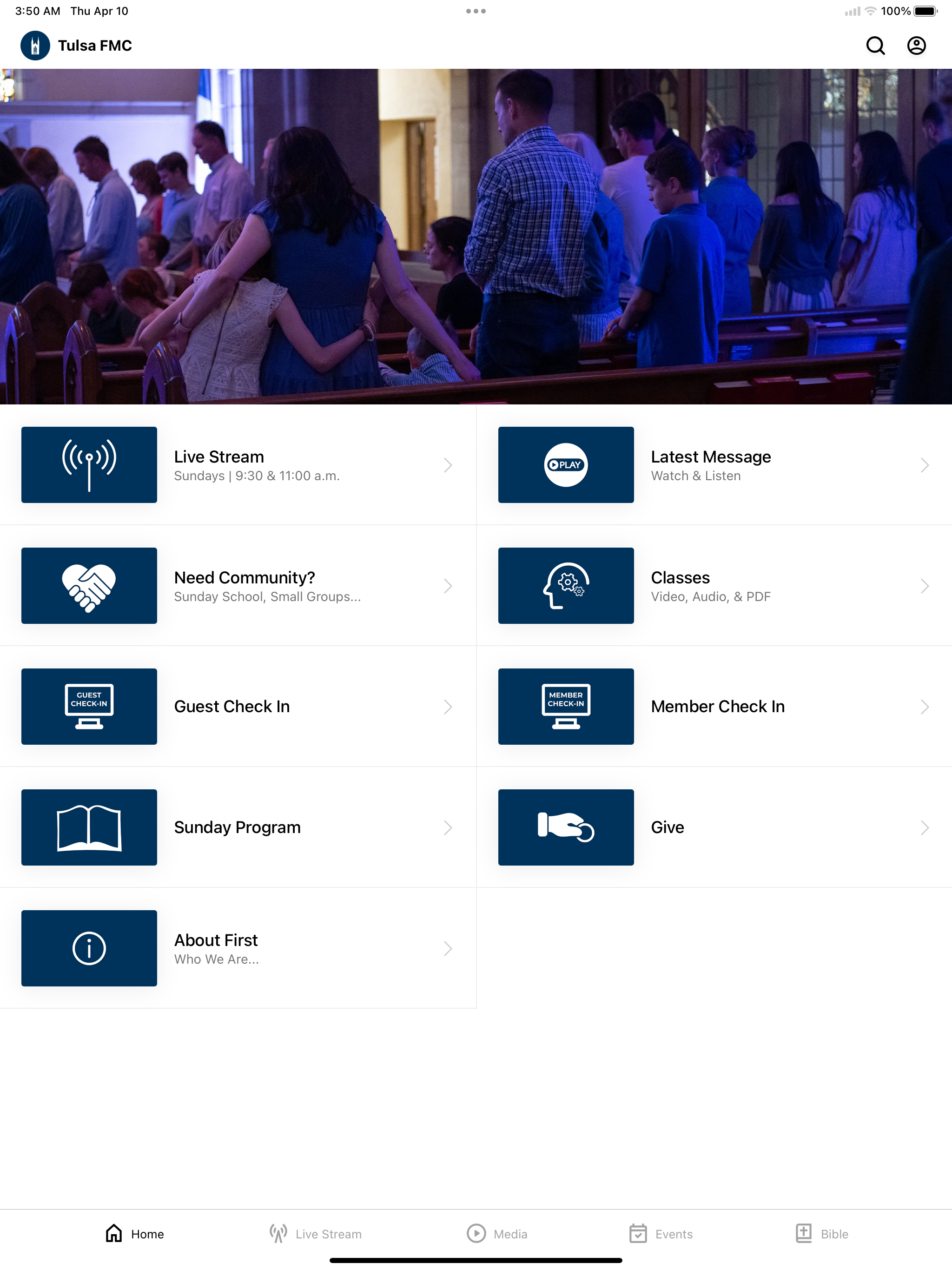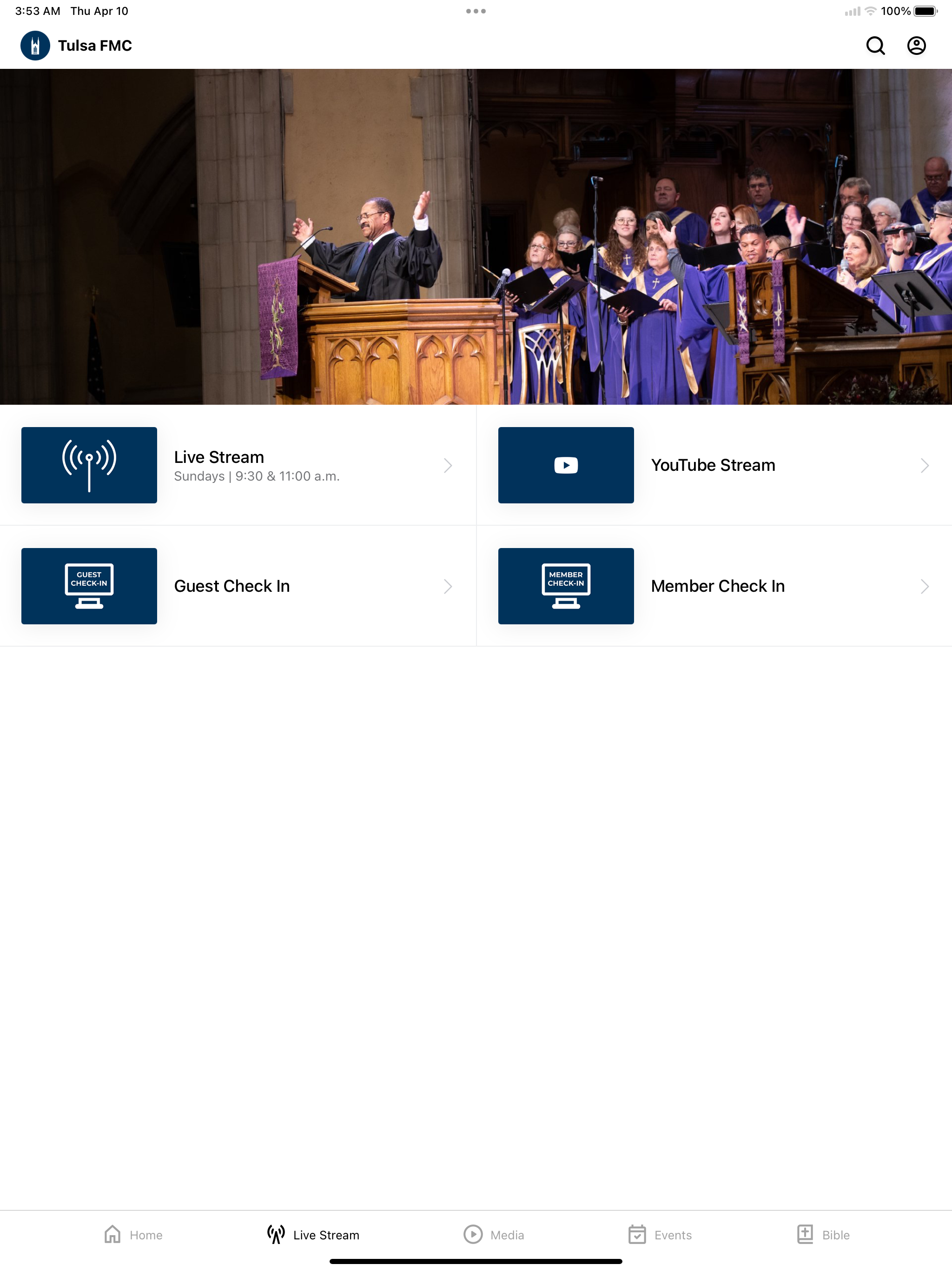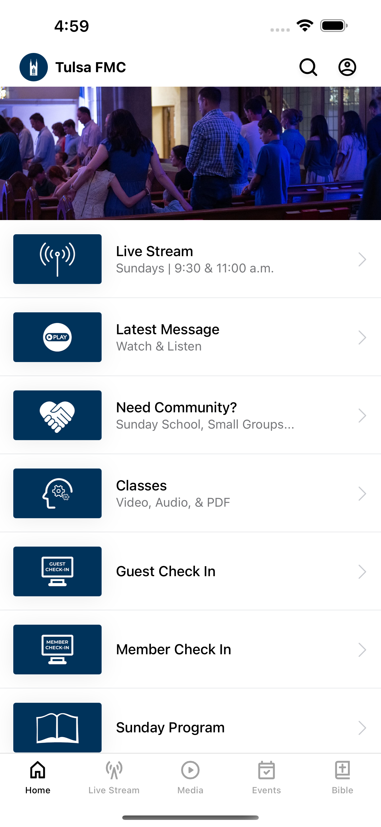 I appreciate how easy this makes it for me to check the calendar for an upcoming event, or listen to a sermon I missed or am trying to recall something from. The UI is clean, easy to navigate and makes the information easily accessible. Nicely handled.