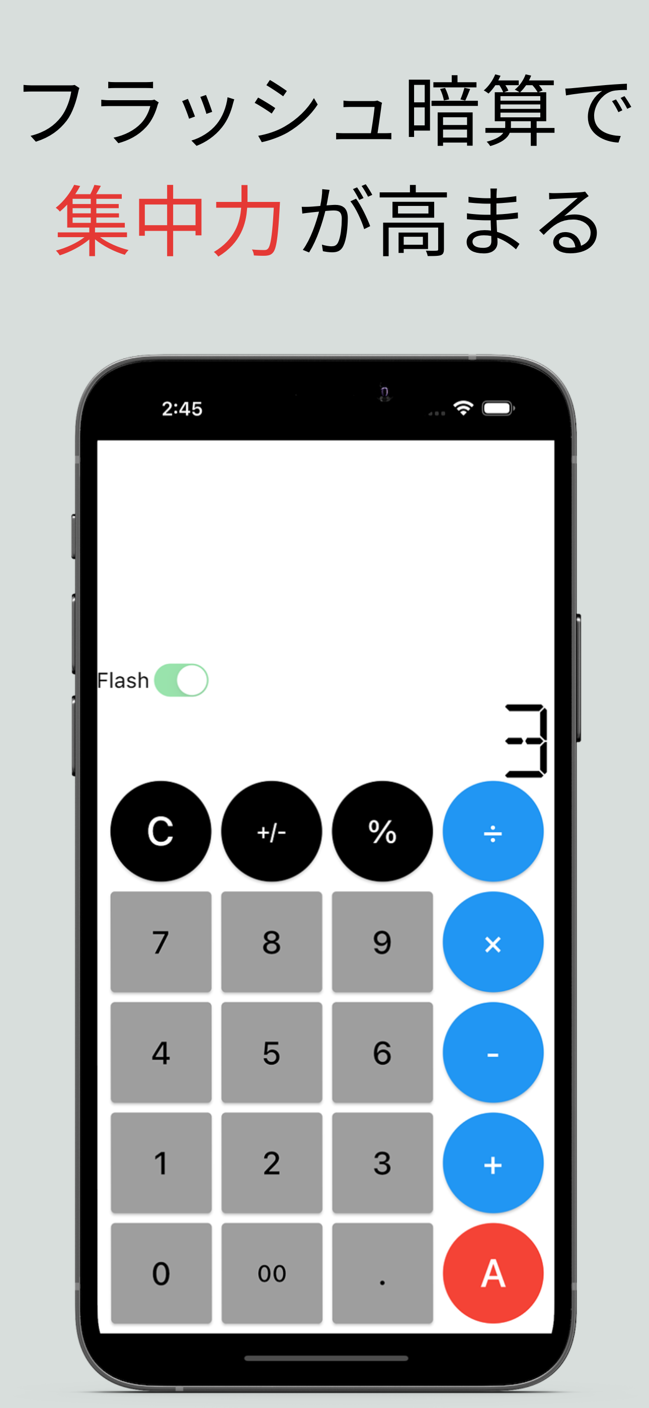 シンプルで使いやすい電卓。 毎日の仕事やふとした計算に最適 日常的な足し算、引き算、掛け算、割り算ができます。 ディスプレイの文字が大きく見やすい 特徴: ・使いやすい電卓 ・画面が明るく見やすい ・ふとした時に使える ・フラッシュ暗算ができる ・暇なときやスキマ時間にフラッシュ暗算