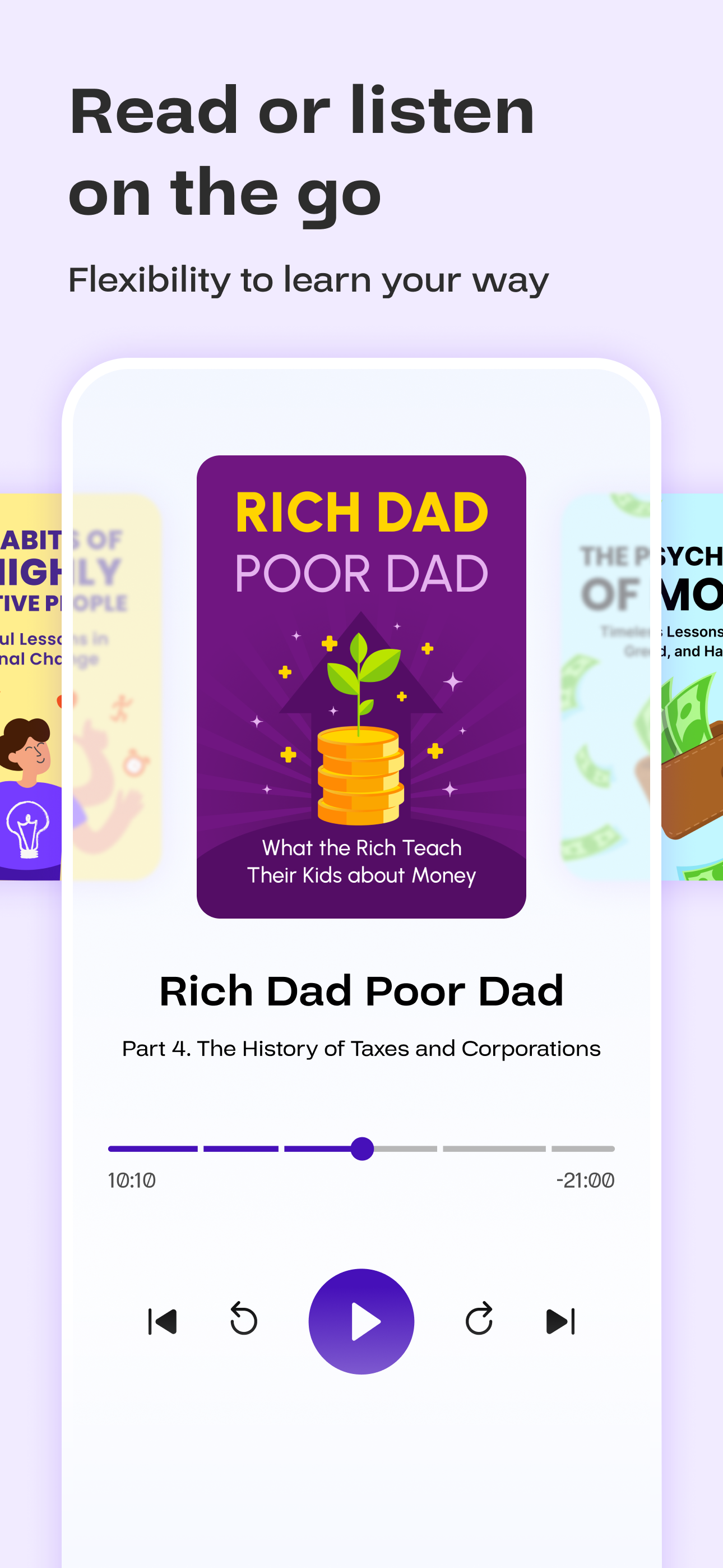 If you don't have much time, but want to read/listen to some book, that's really great app to do this!