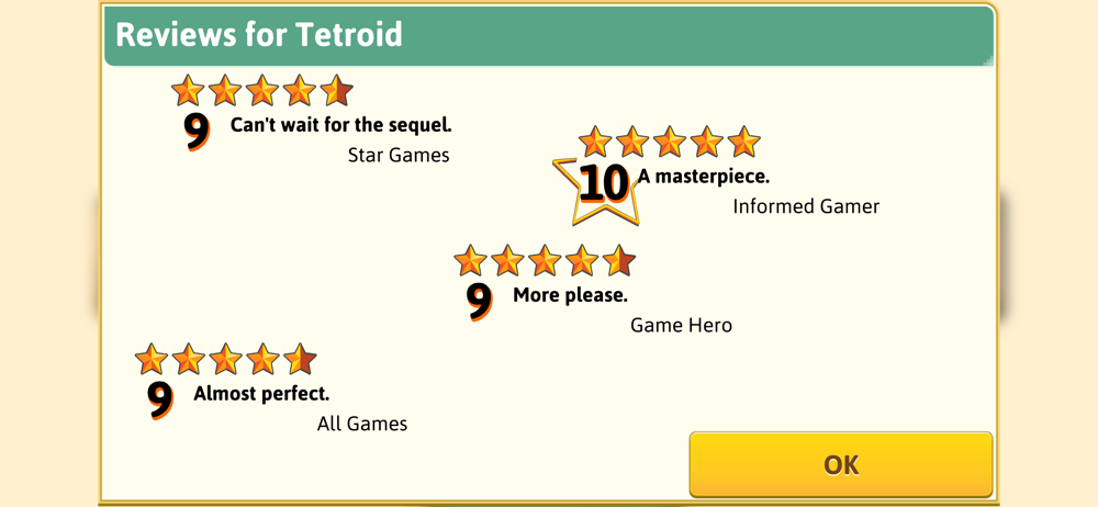 This game is AMAZING! It really shows you how games are developed. In addition to that, the creativity options in this game are amazing. Whenever you make a good game you are rewarded which really makes you feel like you accomplished something. However, a bad game penalizes you in a very user friendly way. It shows you what you did wrong so that you can improve it later. You may lose money and a few fans but nothing a good game wouldn’t fix. This game is extremely balanced and for those people who think the game is short and easy, there is a piracy mode which is EXTREMELY difficult and will make veterans of the game think outside the box. Overall this game is extremely good and can be replayed over and over again. As I’m writing this review I have 10 companies fully finished and I’m working on my 11th and I haven’t gotten bored once. The achievements in the game also give people another thing to do on top of the countless of things to be explored in the game from Easter eggs, to game combinations and research. This game is countless months of fun for a day’s work. And to top it all off, there are no in app purchases and ads! Something that not many games can say. This game is definitely worth it and I thank the developers for making a game that I have enjoyed for months on end.