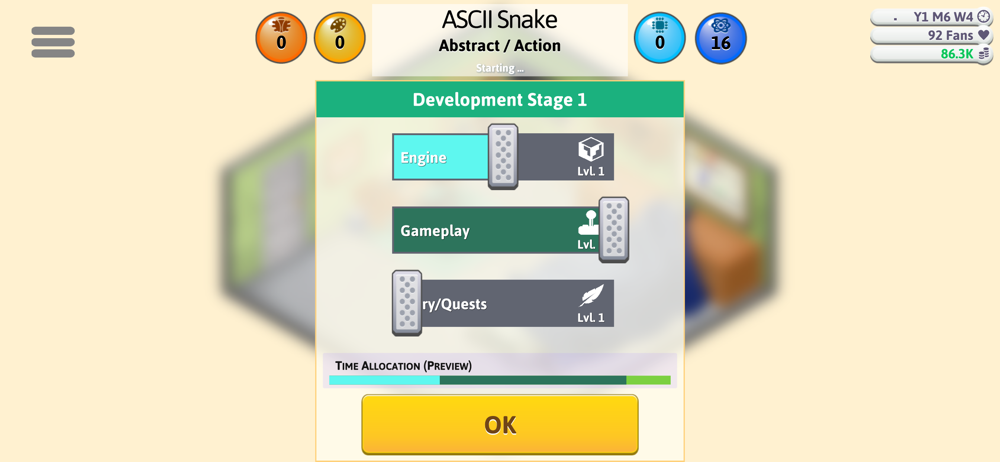 I love the original Game Dev Story, and GDT makes a lot of dynamic innovations over GDS. But some major problems in the game logic make this one more annoying than enjoyable. The first is the way they base the rating off the game on the previous rating of them game. Instead of building a company by gradually improving your games, you have to rig the system by making a bad game to get a good game. In other words, the game penalizing you for making consistently good games. Getting a 10/10 on a game ends up being something you want to avoid, rather than a positive achievement. Other oversights are the way they handle costs, where some things are too expensive to ever be worth bothering with. MMO games are a prime example. They have no cap on the increasing maintenance costs over time, so they become a financial black hole. So why make them. The key to winning this game, in other words, is to learn the non-intuitive ways to succeed in the game that you pretty much only figure out by trial-and-error or by reading Internet forums on the game, because so many of the decisions you make in the game have consequences completely outside any intuitive logic. The original GDS is simpler, and lacks a lot of the cool features of GDT, but it’s still a more enjoyable game to play because it follows some identifiable logic that players can discover more intuitively in the game to become successful.