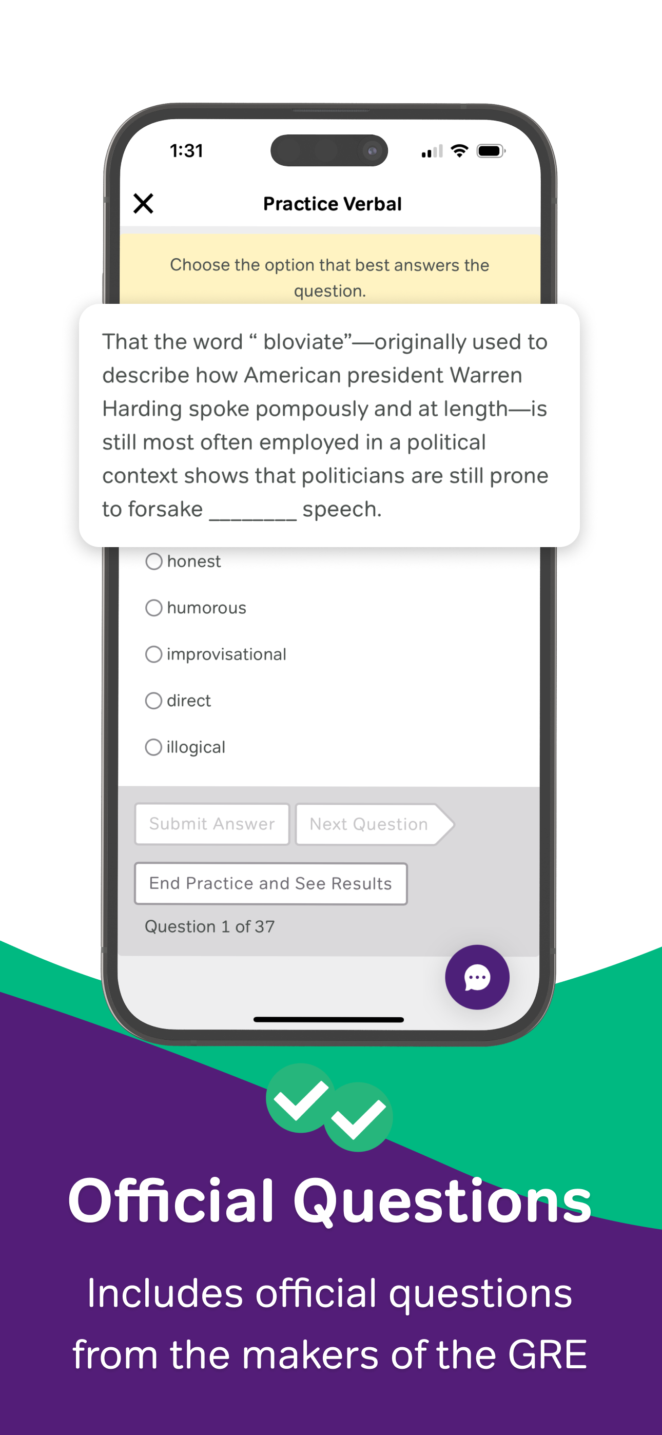The app is OK overall; however, it could be significantly improved with a few UI/UX changes.1. Some of the verbal questions offered definitions for the words, but others do not. It would be great if all such questions defined the vocabulary words in the answer choices.2. I clicked the linked definition of a word which sent me to an Internet dictionary. I then could not return to the app without restarting it, thereby losing my place in the questions. There should be an obvious way to return back to the app from the online dictionary.3. Similar to the above, there is an exit button where there would typically be a back button. Pressing this button will send you back to the main app homepage rather than the previous screen. I think such a button should be in a different location and should have a Home icon rather than an X icon to prevent accidental exits from the study questions.4. I’ve yet to figure out how to review flagged or previously missed questions; I think there might be a filter for it but I think it could be more obvious.5. After hitting submit on a long verbal question, I shouldn’t have to scroll all the way down to see the results. I’ve already read the text at that point, so hiring submit should just load the answers without changing the viewpoint of the text and available answer choices.Regarding content, some of the questions have absurdly long answers. I’m unclear how we’re supposed to answer such questions in any reasonable amount of time.