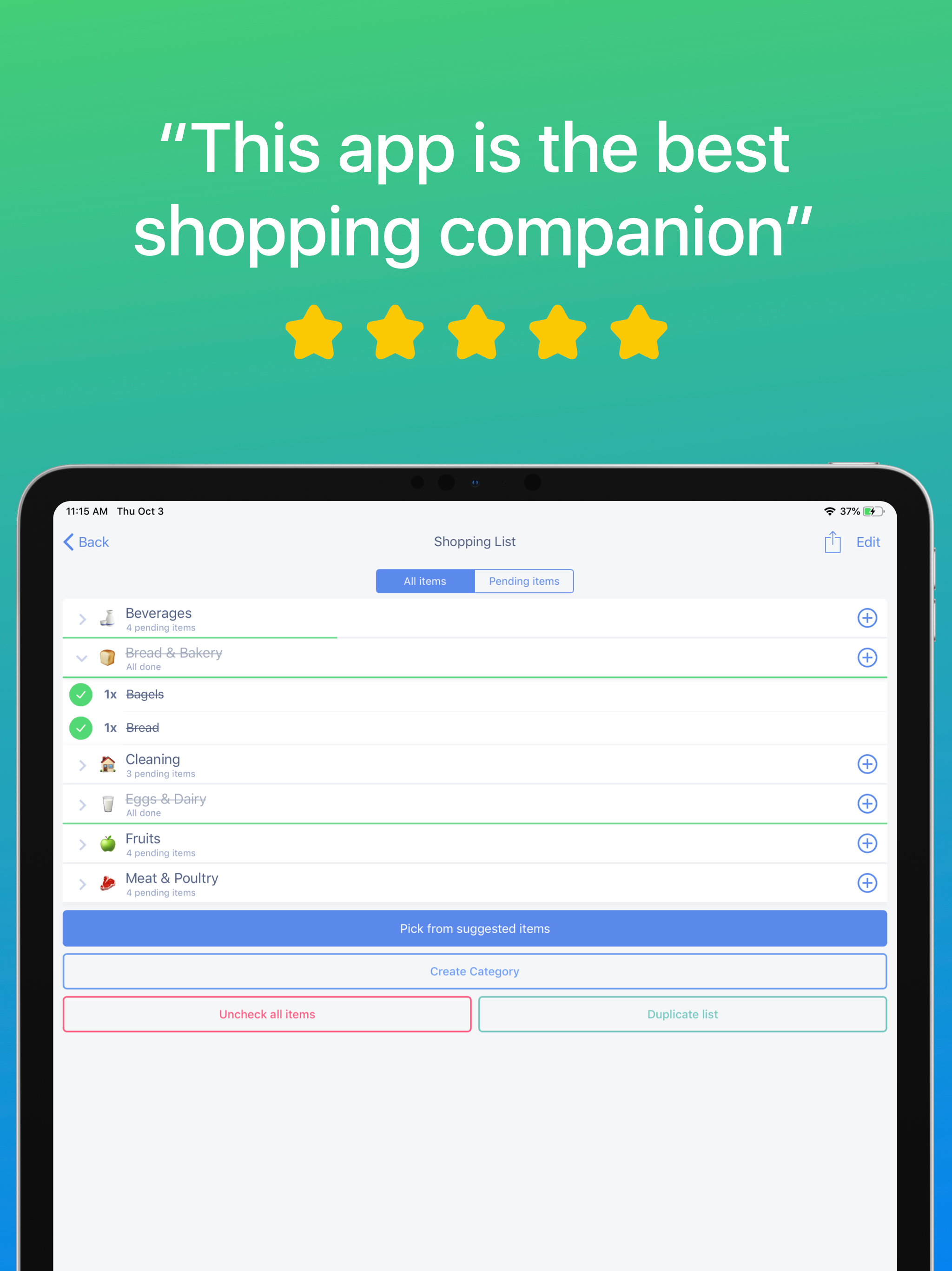 Other than this app having no feature to delete items already completed/checked, it works well! Most other apps offer deleting shopping items already in the cart, not this app—this would be tremendously useful but is missing. It is weird, also, that it auto-creates new items without you even wanting to add a new item but that’s a small issue I can live with. All in all, pretty good stuff!