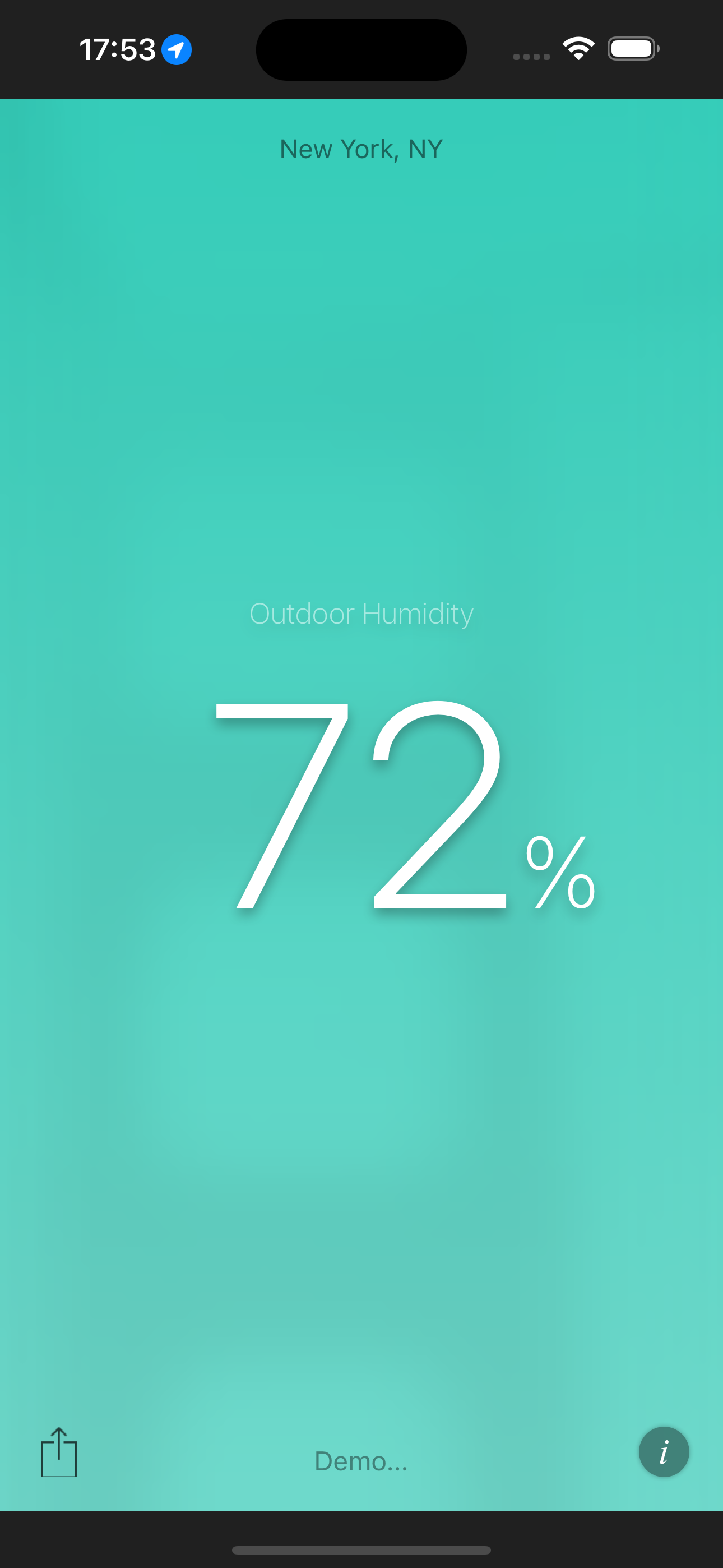 This application shows the current relative outdoor humidity, measured by a nearby weather station for which it uses your current location. The backg...