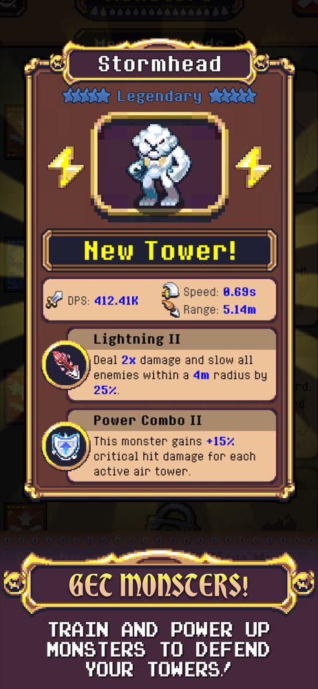 I appreciate how they don’t have constant forced ads; rather it’s an optional ad that gives you a gift. The in app prices seem steep, but I see it as a necessity to help keep forceful ads at bay. Or you can just stay as a Free to play player. It’s a grind, but if you’re here, then that’s what you already want. An idle TD game that feels almost infinite, taking up 10 minutes of time or even hours. With a variety of ways to power up your monster using Essence or gems, also prestige points. You gain essence by beating every 10th level and from bosses I presume, my highest wave is only 190, so I’m still very new. Gems can be earned from completing challenges, while Prestige points can be amassed by going up in prestige. Also there are buyable bundles/packs of goodies. Good game. Edit/tip: save up gems for 2x gameplay speed. It takes about two and a half days to earn 500 through achievements, and gift ads, it might even take less time tbh. Since I wasn’t too avid about playing, but I did let it play through the night as I slept. 100% worth it