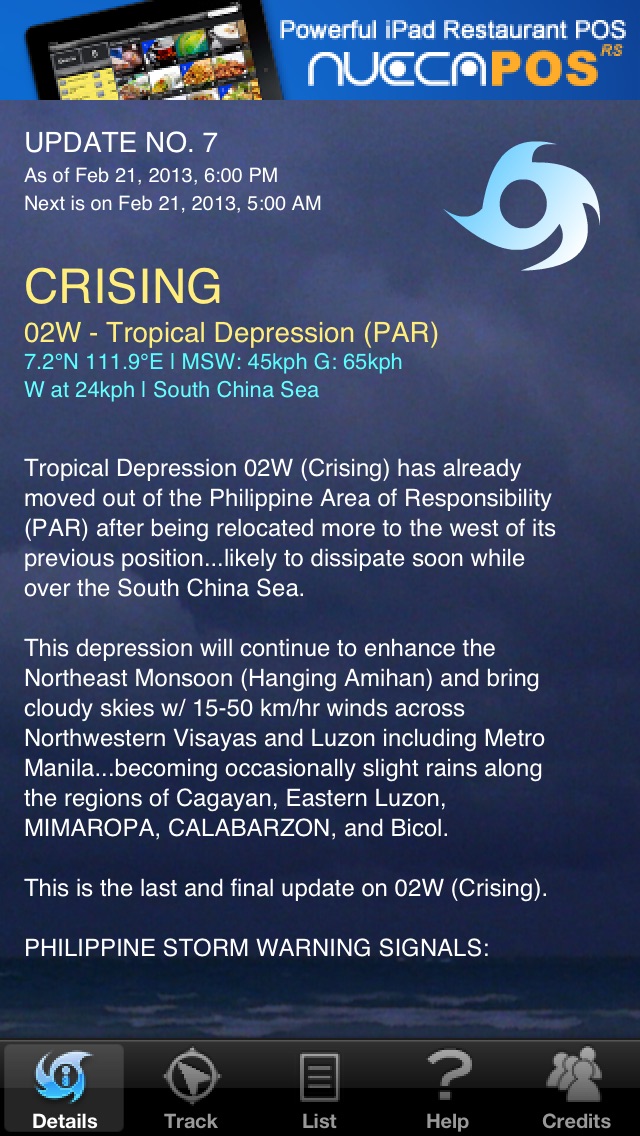 iTyphoon is a premium mobile application that provides reliable and relevant typhoon updates to Filipinos and the world for FREE! It has five (5) tabs...
