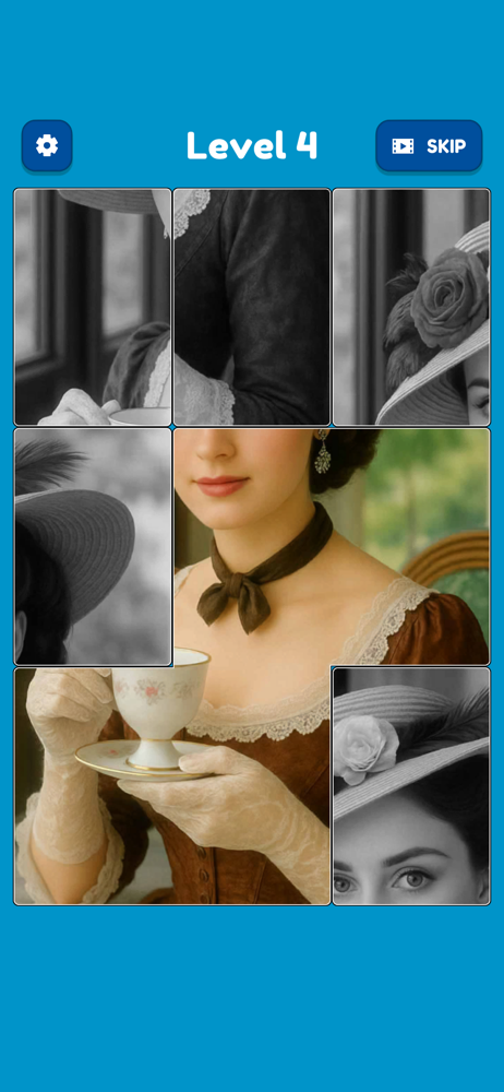 To many pics of people and you can not skip them also a lot of animals with clothes on yuck. Pictures start repeating after level 100 or so not to difficult would be better if more landscape and nature.