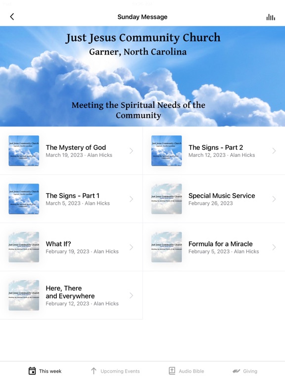 This app will help you stay connected to the Just Jesus Community Church. With this app you can watch or listen to past messages, tune into a live str...