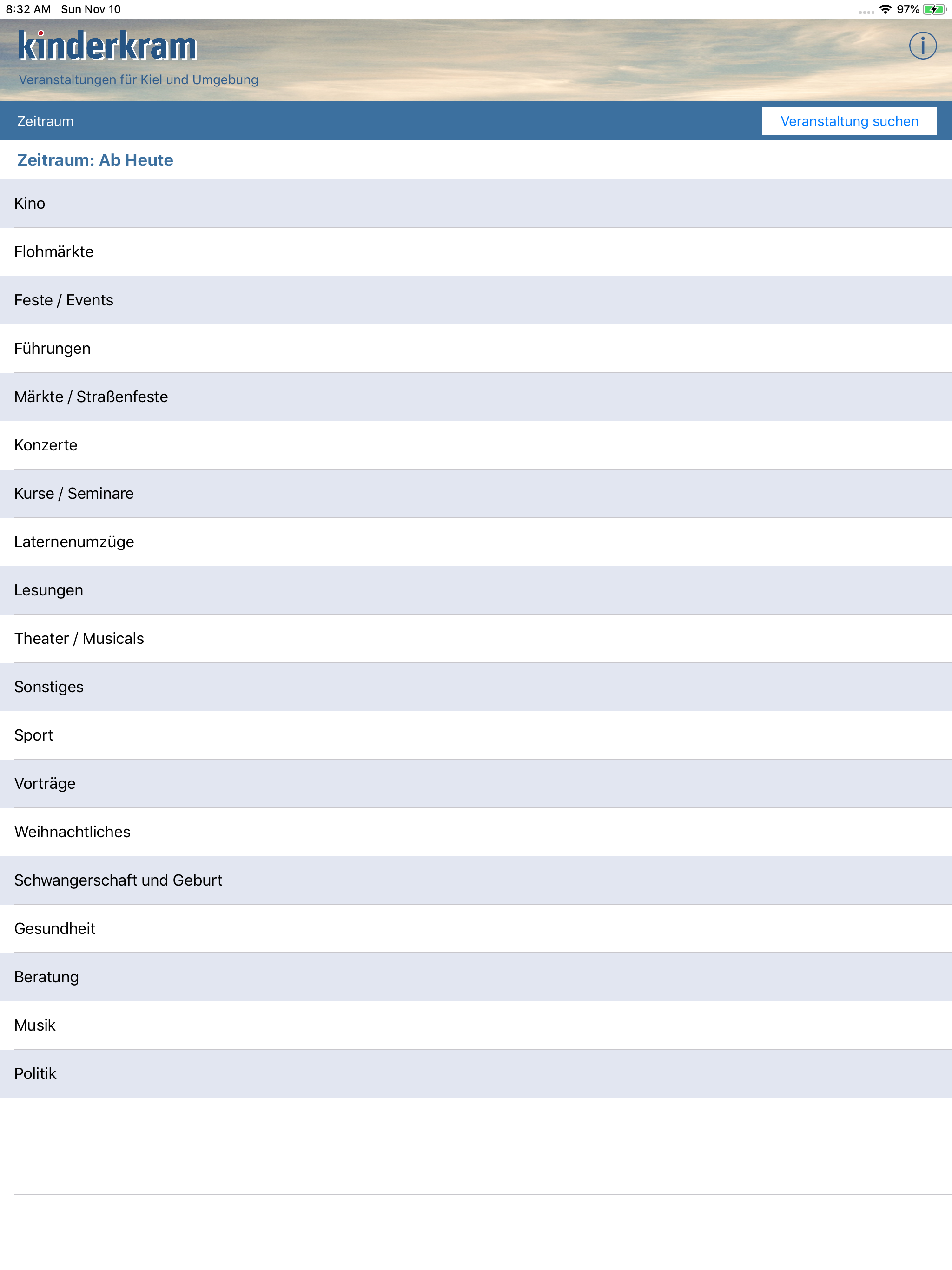 Alle Veranstaltungen für Familien in Kiel und Umgebung gibt es jetzt in der kostenlosen Kinderkram-App. Seit 1997 erscheint in Kiel das Magazin Kinder...