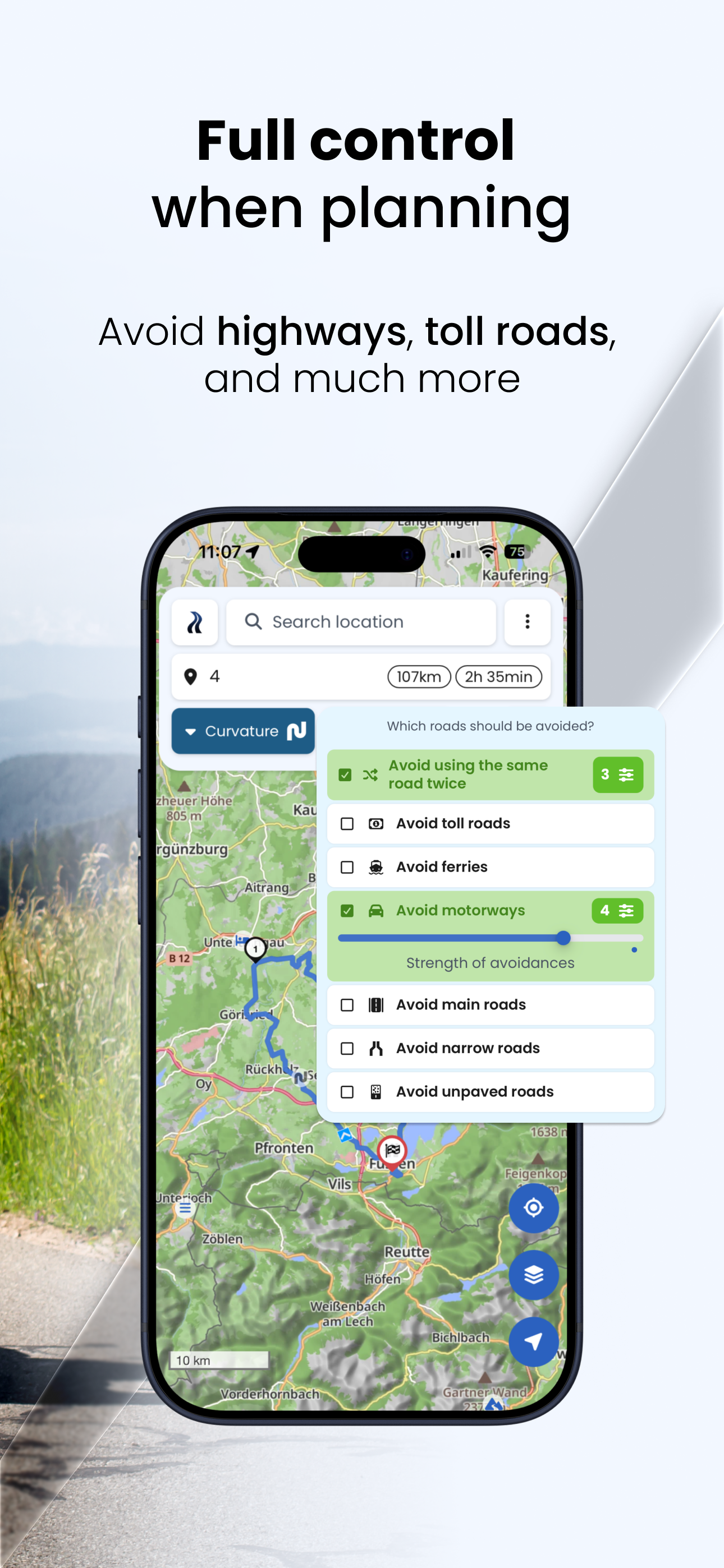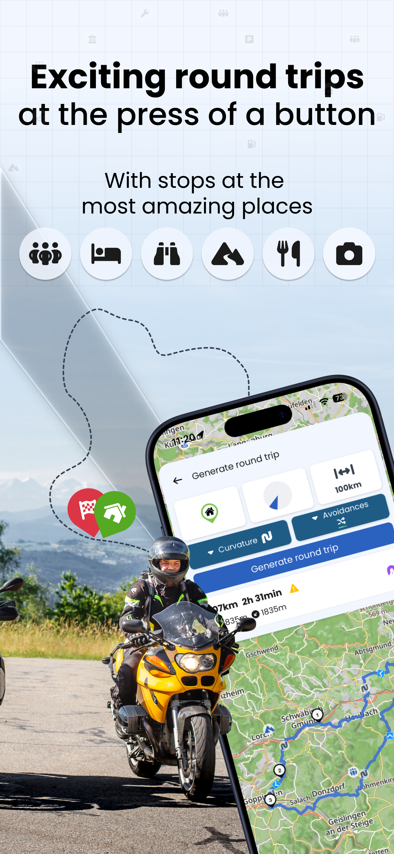 Discover the curviest motorcycle routes and experience beautiful round trips with the individual route planning of Kurviger. Ride your route easily wi...