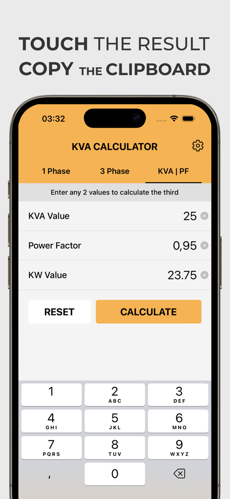 kVA calculator app designed for professionals working with generators, transformers, or UPS systems. It allows you to calculate and convert between kV...