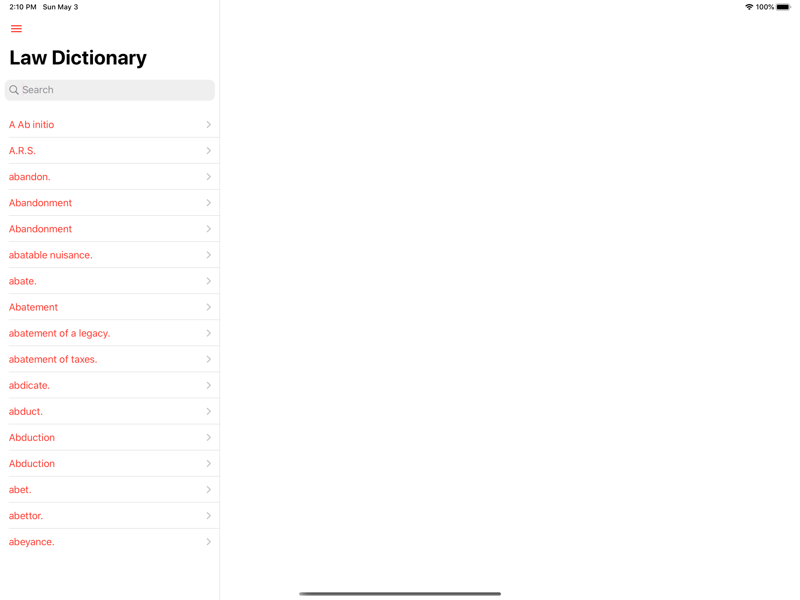 good app. private. very helpful. works offline. i find it a helpful accompaniment to bouvier's and black's law dictionaries.
