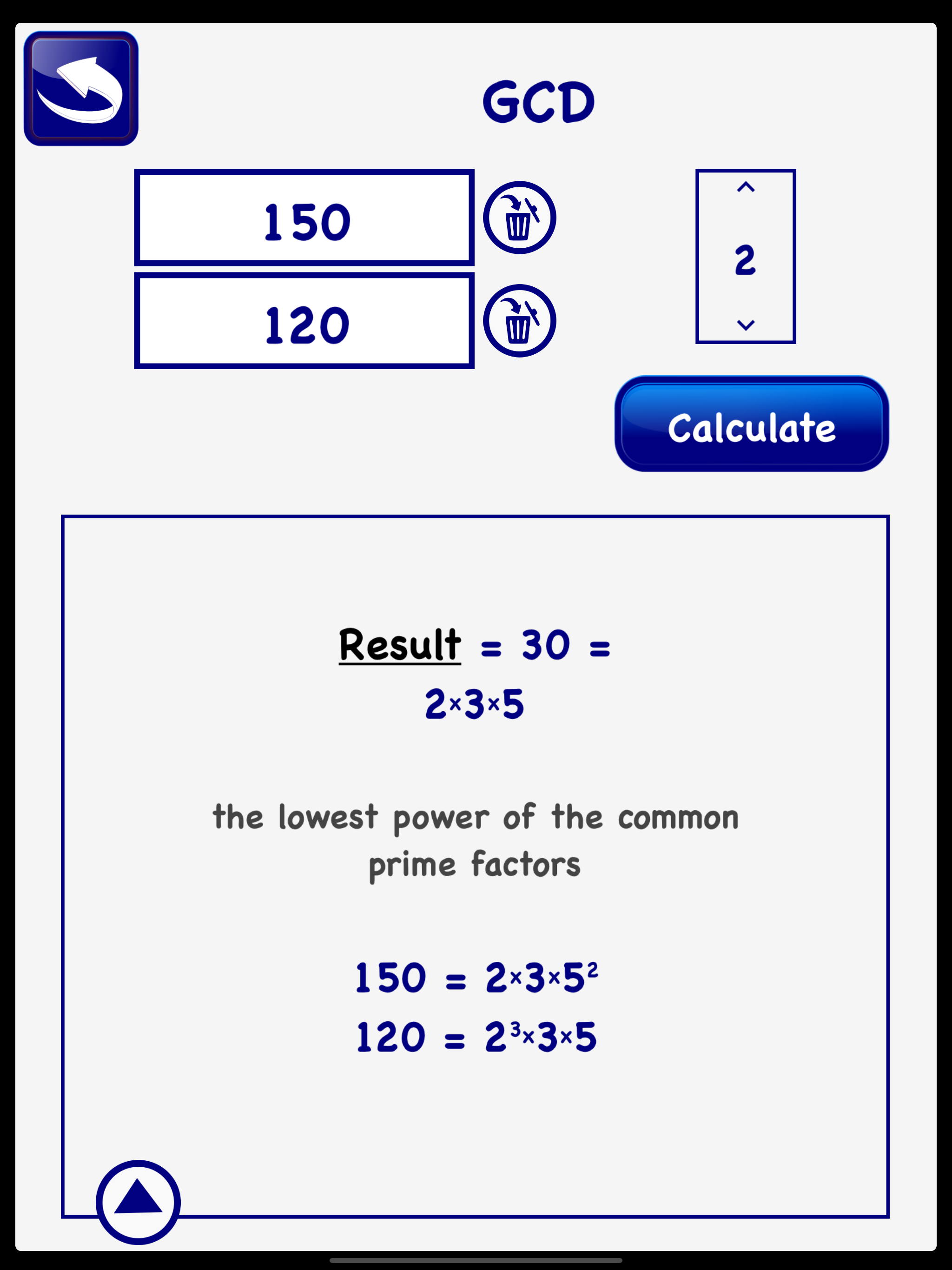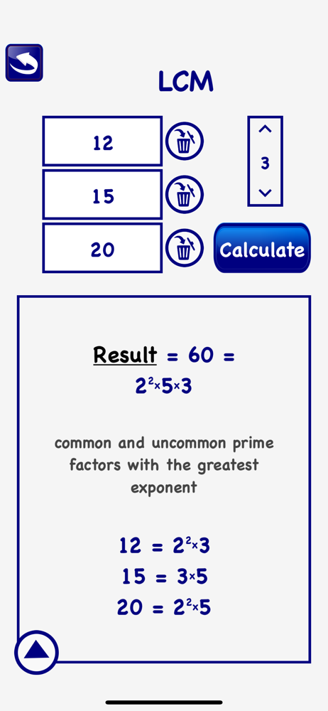 This application is a mathematical tool that helps to find the LCM (least common multiple) and the GCD (greatest common divisor) of up to 4 numbers....