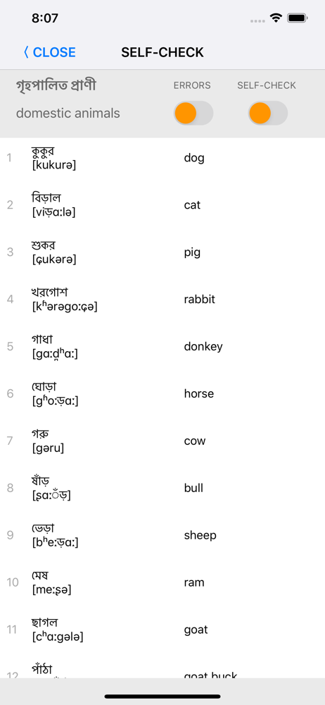 This app is very good for learning the Bengali script and accumulating vocabulary; however, I find two problems: the app doesnโt teach the learner letter combinations and the International Phonetic Alphabet transcriptions are incorrect, though it does give the learner an idea of what the word says without listening to the word. Apart from these two issues, this app is a great app for memorising vocabulary and I would definitely recommend this app to a person wanting to learn Bengali.