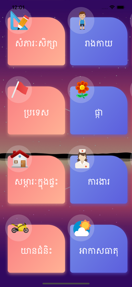 This app teaches your children about Khmer consonants, vowels, vegetables, jobs, and many other categories. App features: * Khmer Picture Dictionary...