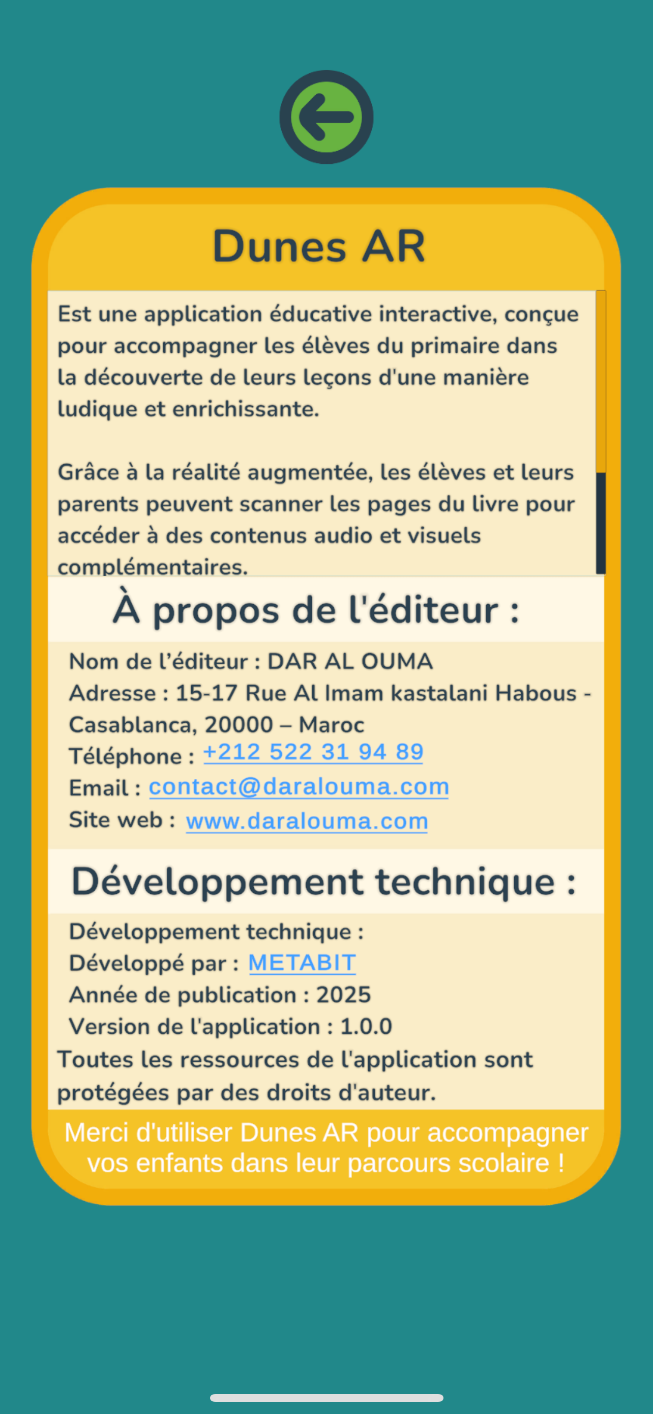 "Les Dunes du Français CM2" est une application éducative destinée aux élèves du primaire (niveau CM2). Elle permet aux enfants de scanner des image...