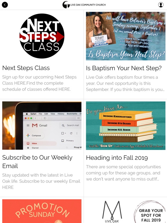 Connect and engage with our community through the Live Oak Community Church app!