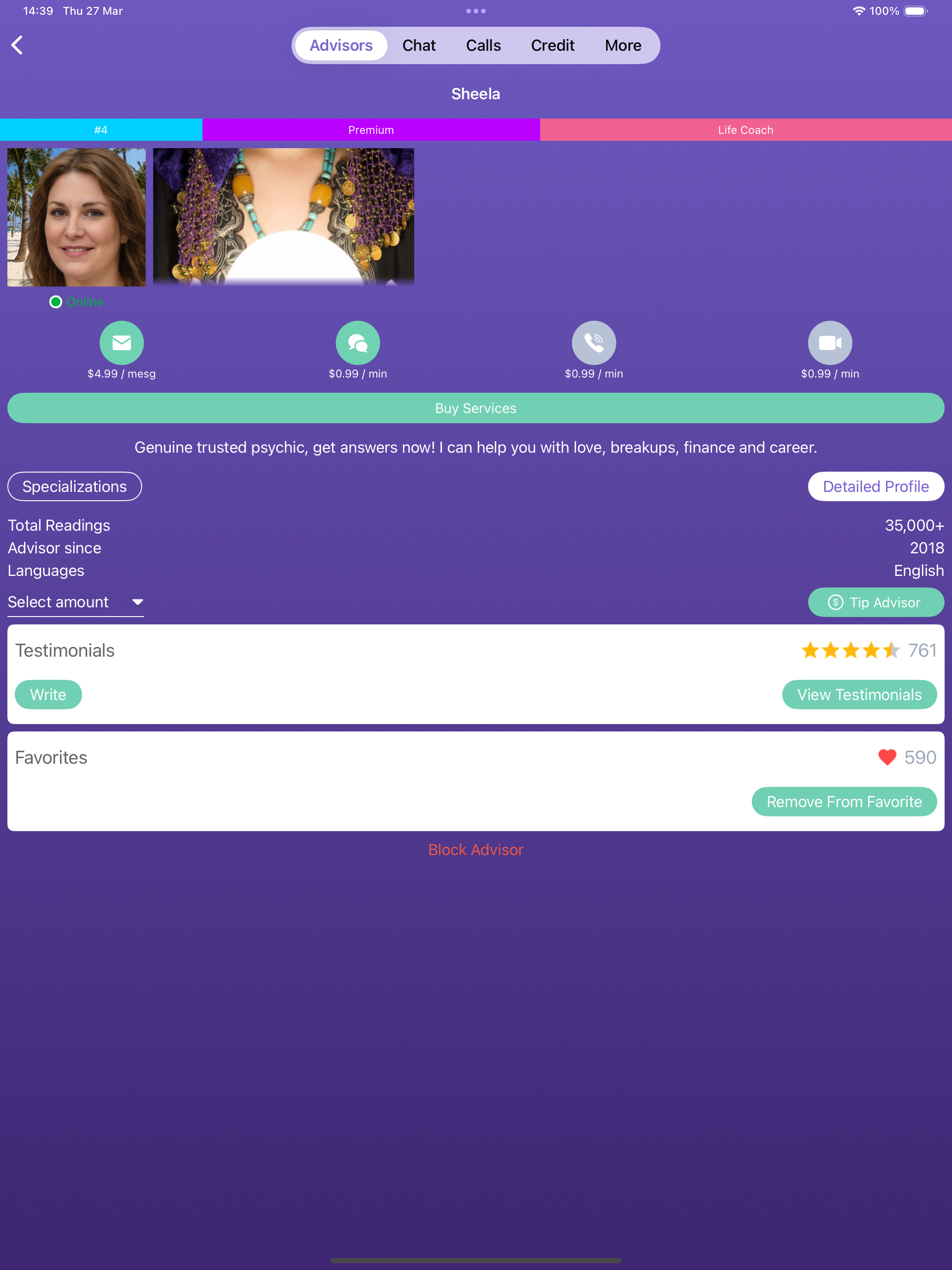 $3.99 FREE Credit on joining. Get additional FREE $0.99 credit on first purchase. Psychic Readings and tarot readings start from just $0.99. Earn FREE...