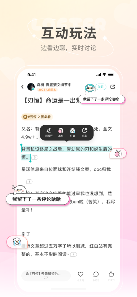 希望lof能稍稍再多考虑考虑创作者吧😭😭😭谢谢了,最近的改动真的很糟心,感觉可能确实是在为读者服务吧,但是创作者真的有一点点心寒,新出来的收藏功能对读者来说也许是福音,但是创作者就会减少一部分的热度(毕竟很多读者点红心只是为了收藏一下),所以其实心里很难受,但是还是希望lof能越做越好吧,很多太太已经转移阵地了,变化肯定是要有的,但总感觉越变越让我心寒,真的挺难过的。lofter我很早就下载了,那个时候没记错的话好像还是黑色图标,然后变成绿色图标,最后连红心蓝手的界面也变了,创作团队确实很辛苦,一直在想办法改进,但是可能是我个人的原因,一直觉得这些改动并不能算是改进,限流依然存在,虽然官方解释说是用户自身网络的问题,但是首页刷不出关注列表的动态也是很普遍的现象…lof陪我很多年,希望能一直守住初心吧