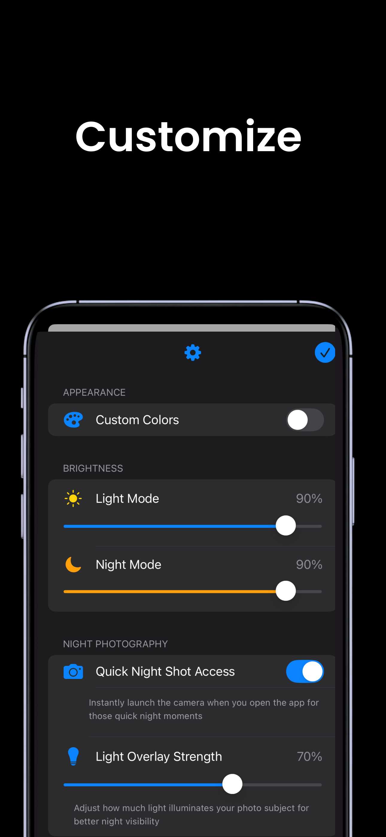 Simple and straightforward. Easy to use in the dark - which is super important for a LIGHT app!