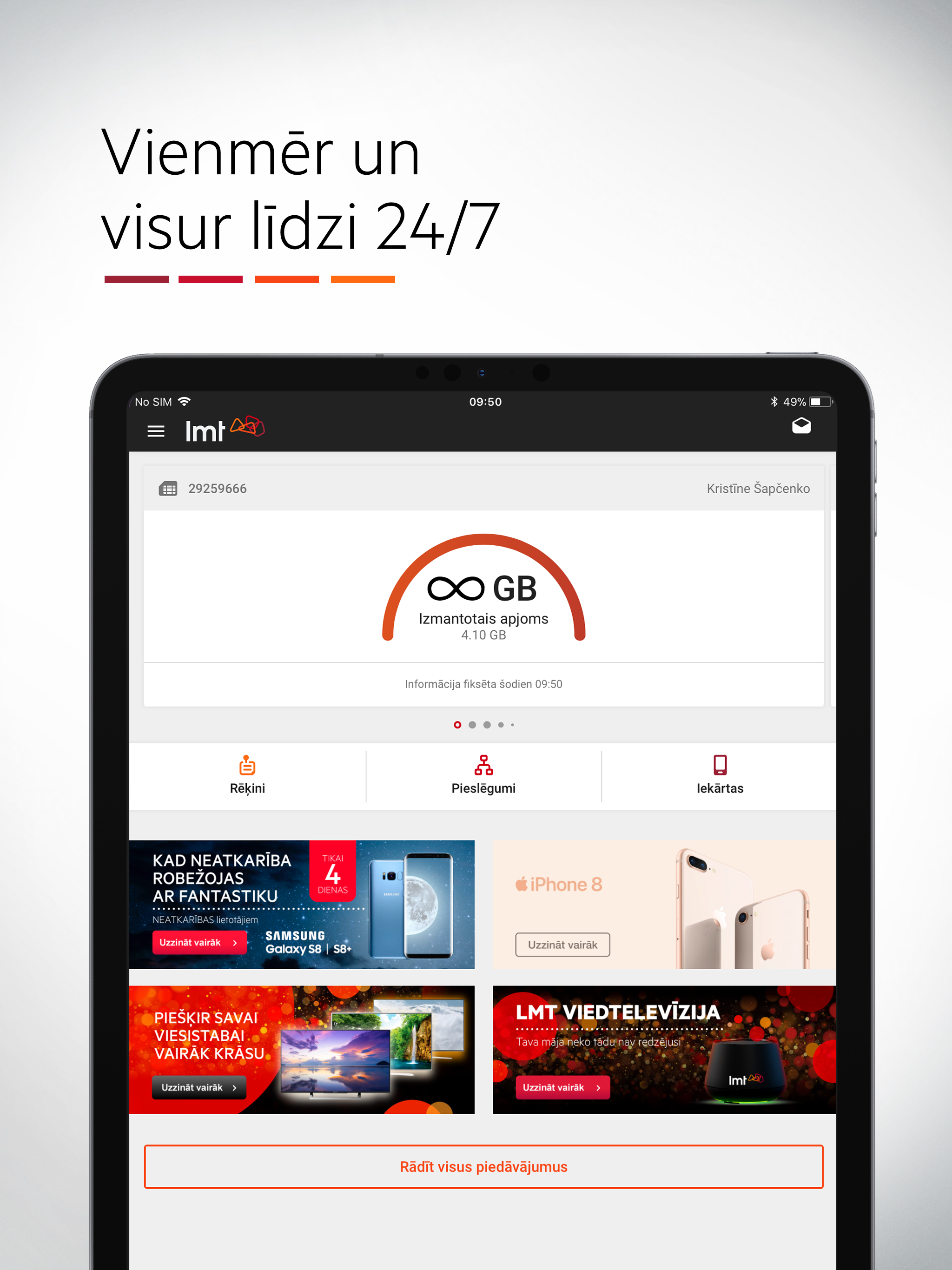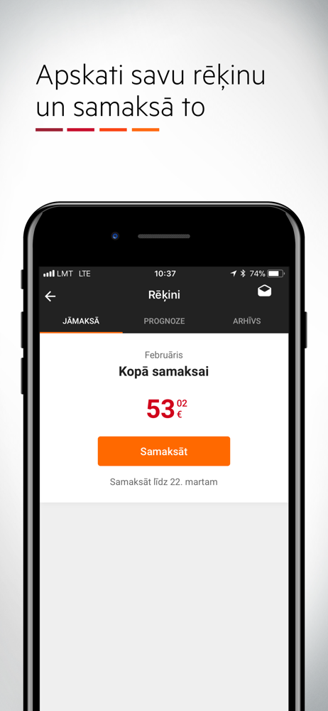 Pārvaldi savus LMT pieslēgumus, rēķinus un pakalpojumus 24/7, lai kur Tu būtu! Tagad to visu vari ērti izdarīt savā viedierīcē, autentificējoties ar s...