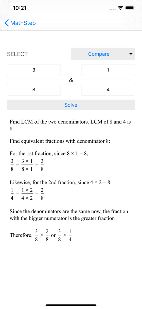 MathStep is a free math app intended to help beginners, who struggle with basic math concepts. This app will show you step-by-step solution to all kin...
