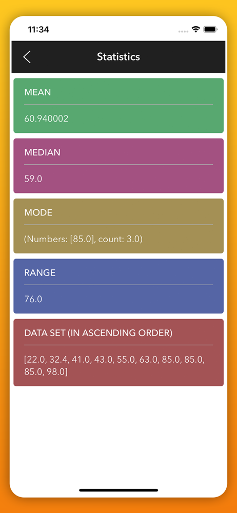 Mean Statistics Calculation application which provides you to solve your statistics related problems.It provides many statistics terms for the calcula...