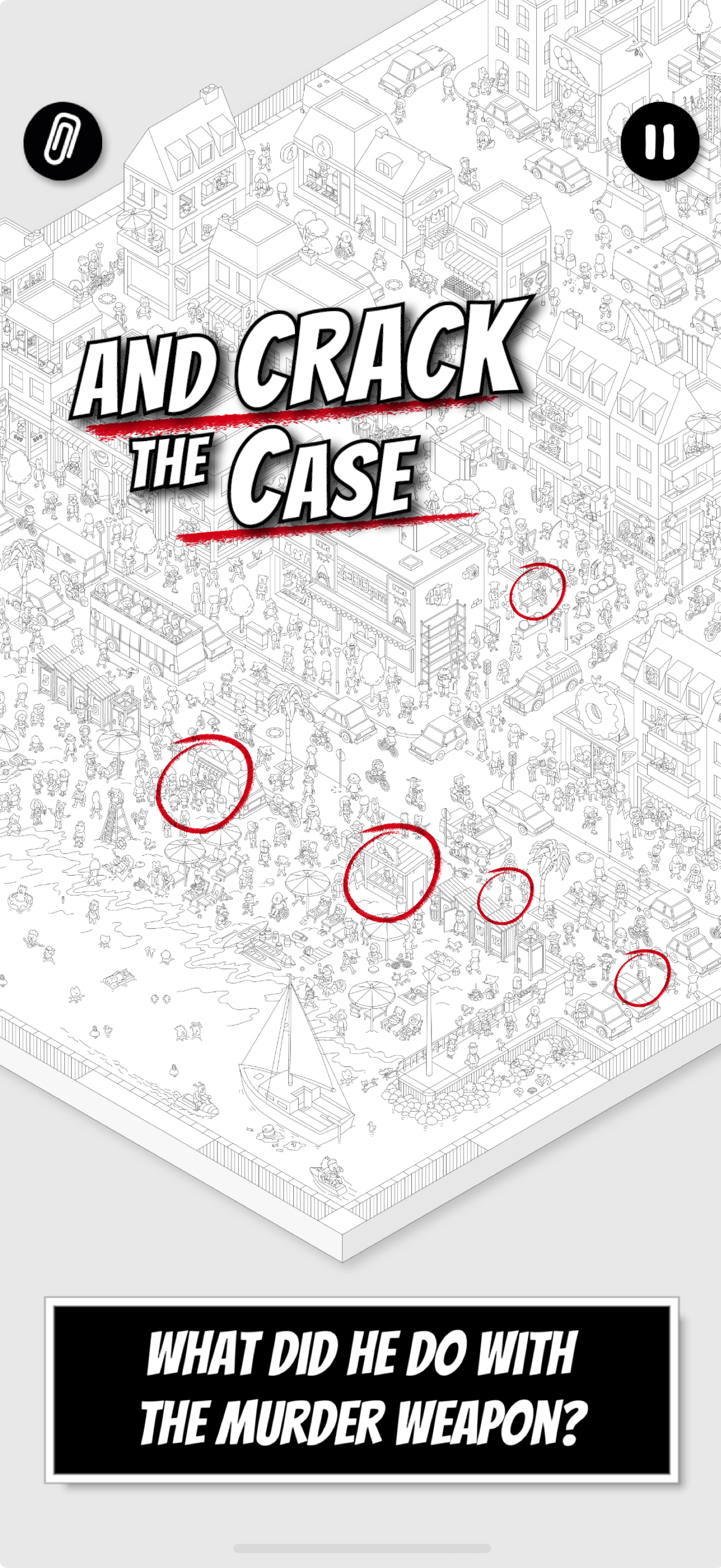 the game is fun, cute, and really creative. i’m impressed by the concept and the huge illustration used throughout it. i got frustrated by the vagueness of some of the questions and hints. i don’t want to be given the answers, but some questions weren’t specific on what i should be looking for, and some of the hints were the type of general advice that belong in an FAQ page. one example of a vague question/prompt was “Compare what you have found with something else!” it’s too open-ended and led to me tapping all over the massive picture because none of the similar items i found during the case aren’t the exact thing that the game wanted me to find, even though they all matched the answer. an example of an unhelpful hint was “Look closely at the photo, paying attention to every detail in the background. Then search for the exact spot in the city.” that’s what i was already doing, and that’s what the prompt already told me to do. i expected a hint that would point me to an area of the city to narrow the search. it became less fun the longer i spent zooming in and out, squinting until i got a headache and had to stop playing.