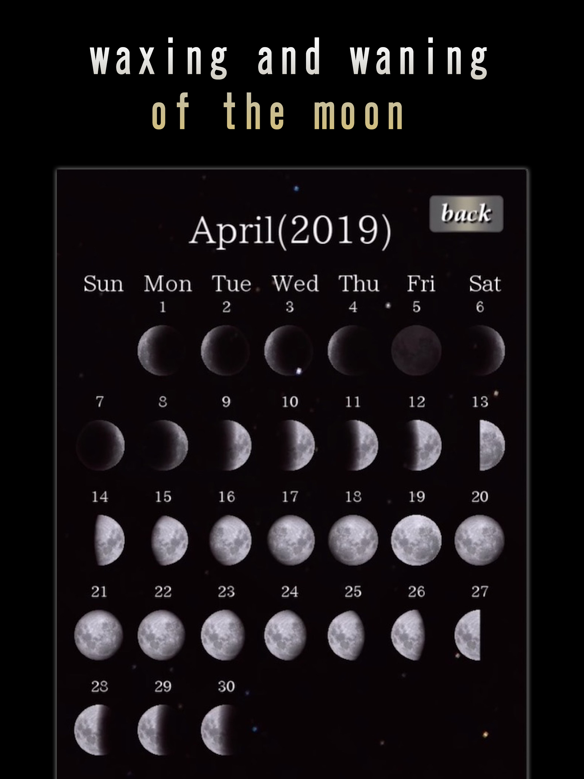 ++ Features ++ * View what the moon looks like on any day. * Check how the moon phase change monthly. * Healing music with the moon image. โTerms of...