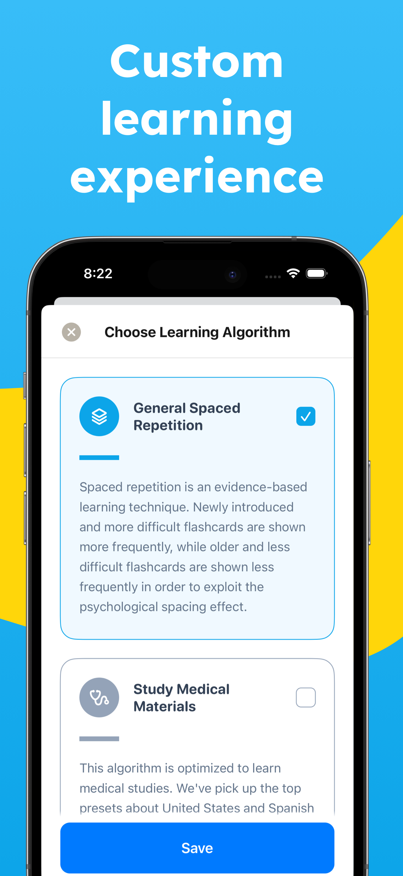 This app is awesome and I use it every day for language learning. Only request would be if possible, could you make the review settings a bit more customizable? I find myself consistently pressing “hard” on cards that I find somewhat easy because sometimes the estimated next review date for “easy” (say 20 days) is so much later than the estimated review date for “hard” (say 12 days). I prefer more frequent reviews in general, so a more customizable review algorithm would be helpful