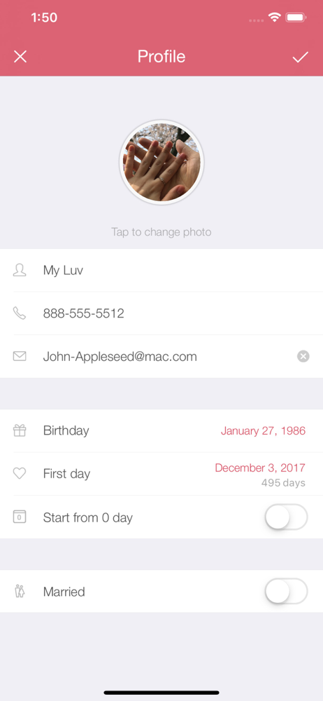 My Luv is essential app for Couples. Beautiful design, easy to setup and track anniversaries and events. FEATURES * Day Counter * Event List: My Lu...