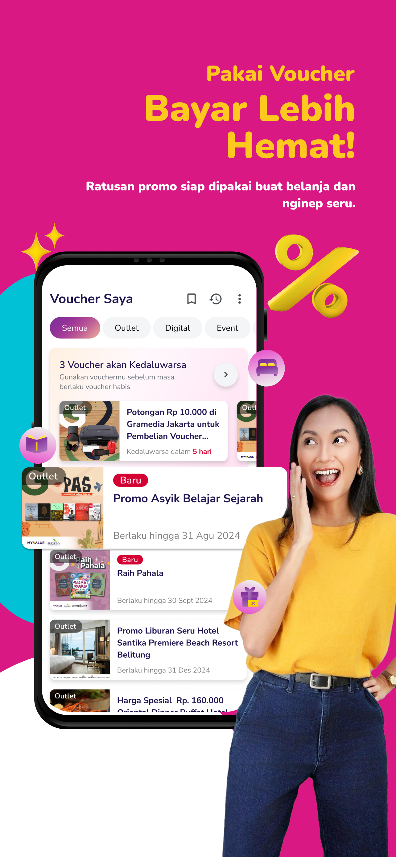 MyValue merupakan reward program dari Kompas Gramedia Group berbentuk aplikasi digital, yang sebelumnya berbentuk kartu KG Value Card dengan 13 jenis...