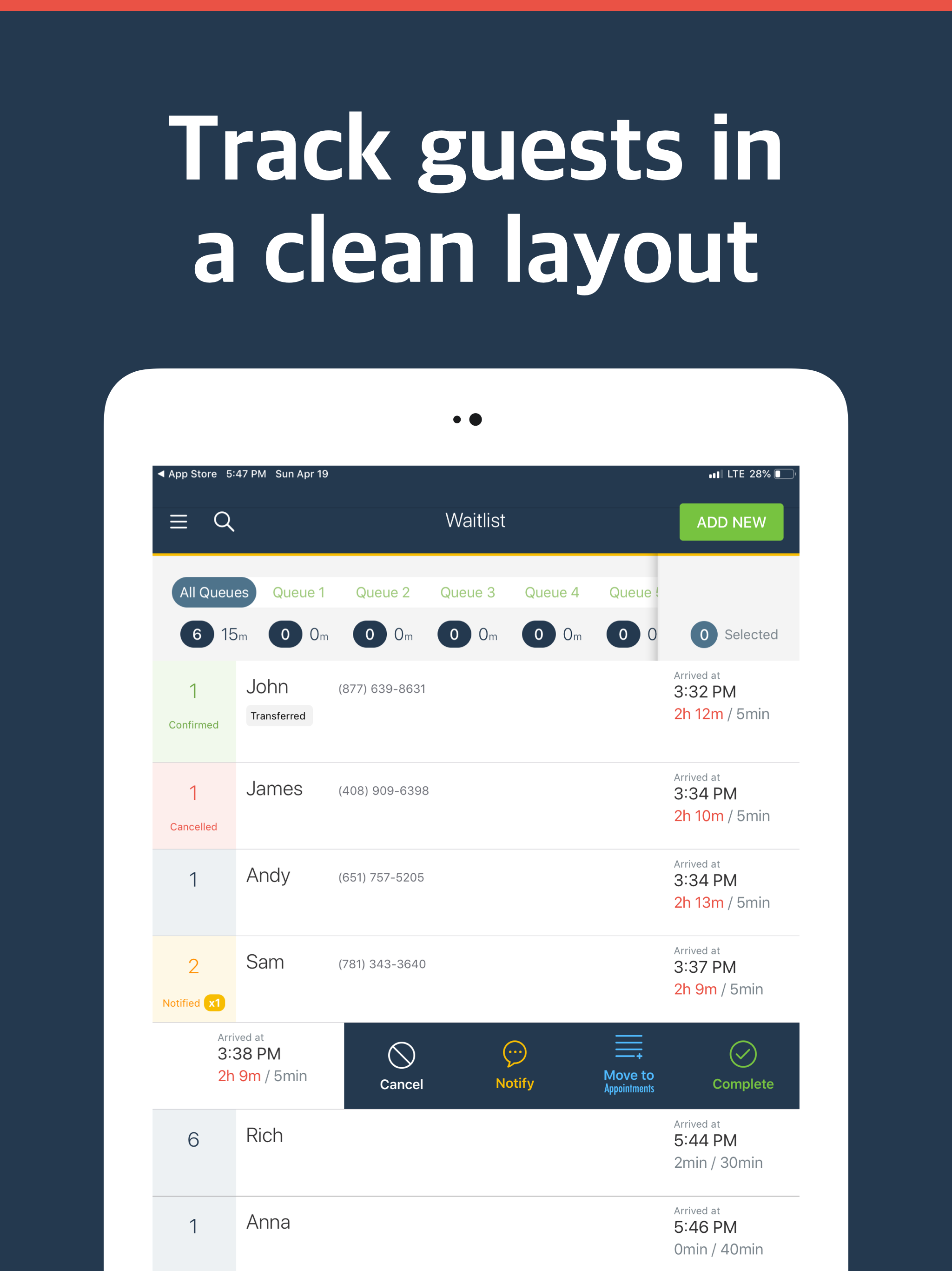 Nextme has been a lifesaver during our busiest weekend times! we have a clear list of all names, place to list client's location in the restaurant so we can locate them when it's their turn, and most importantly, a time marker for when the client checked in with the amount of time they have waited. all these functions and more have been so helpful in keeping our clients happy while they wait in line. super shoutout to the nextme team for providing this app and services!!