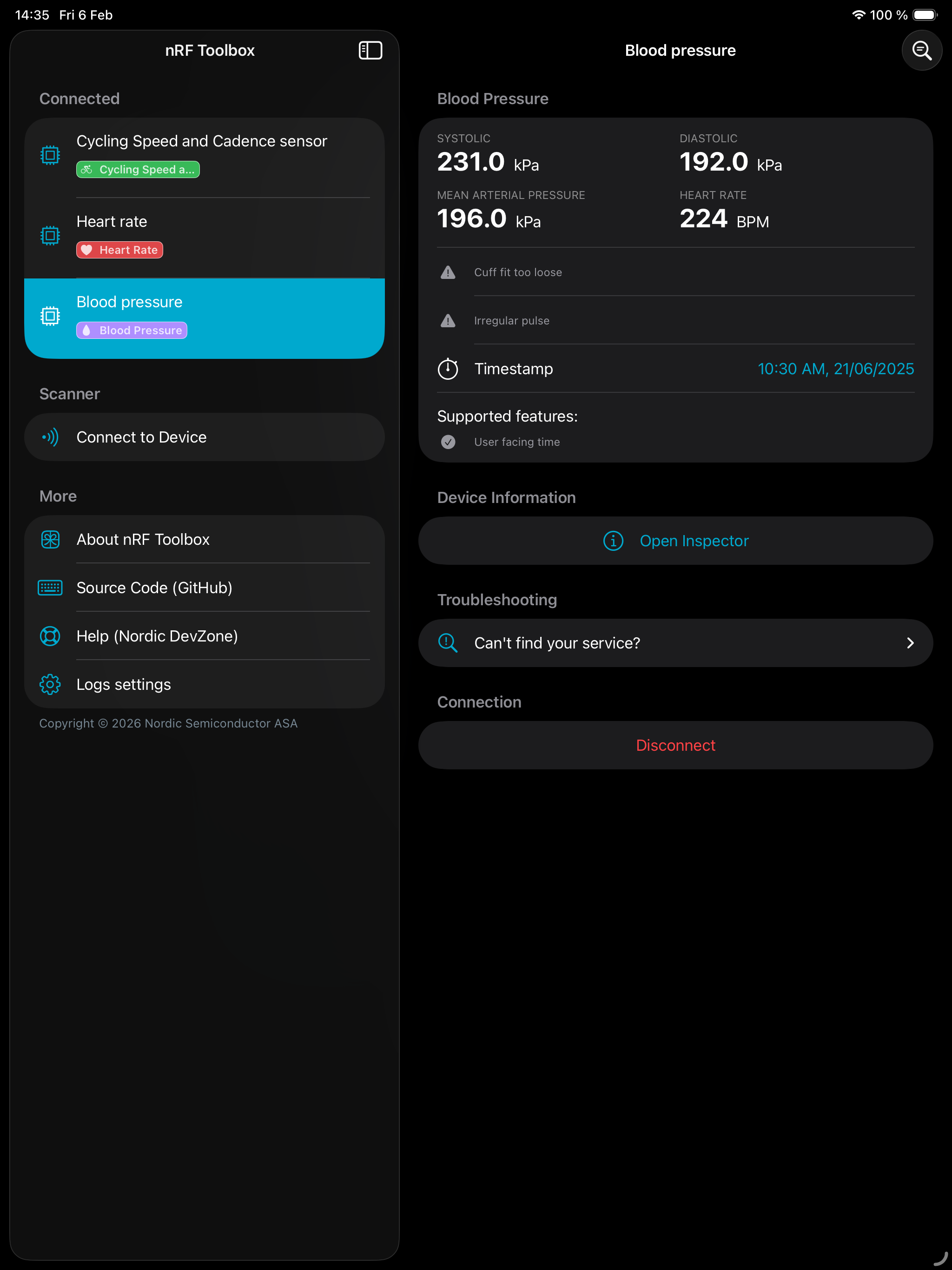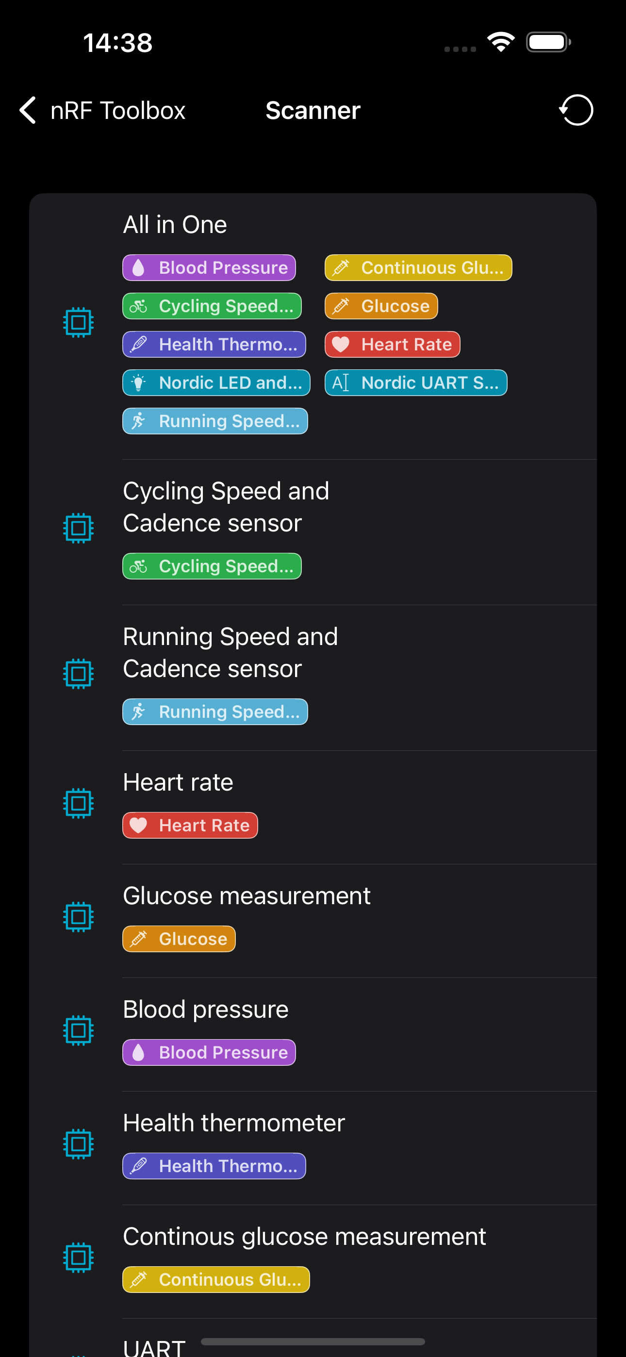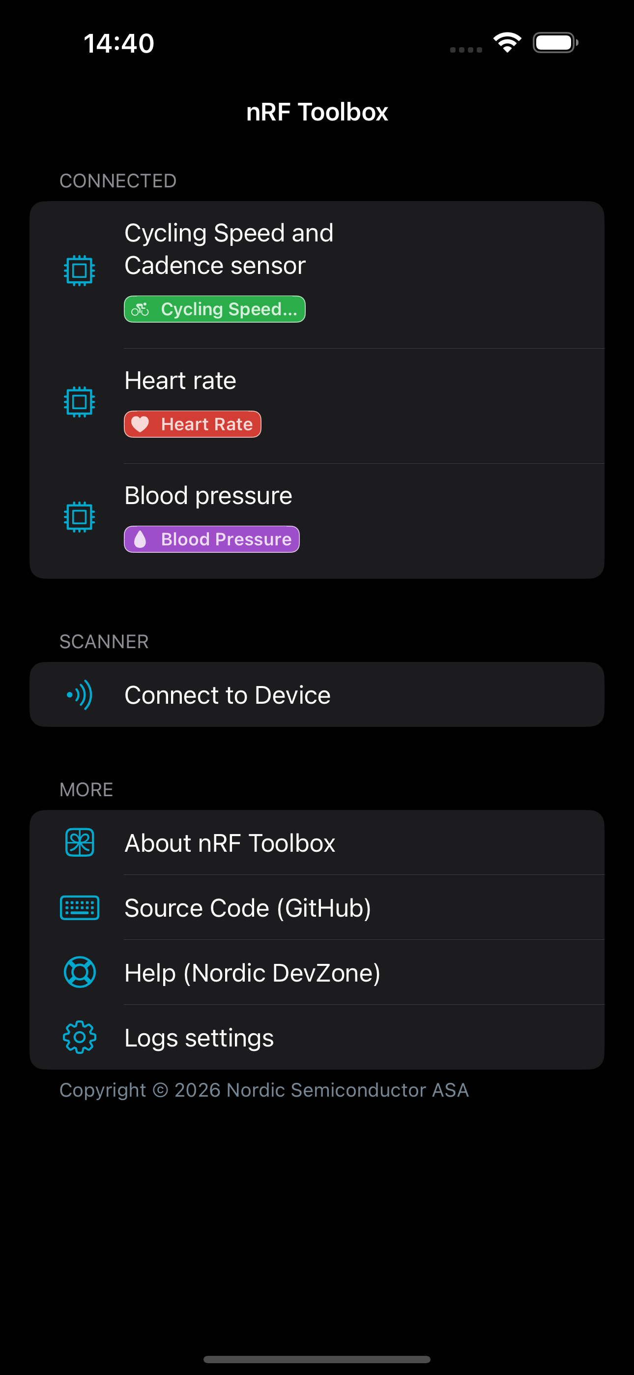nRF Toolbox works with a wide range of Bluetooth Low Energy accessories. It contains applications demonstrating BLE profiles: Cycling Speed and Cadenc...