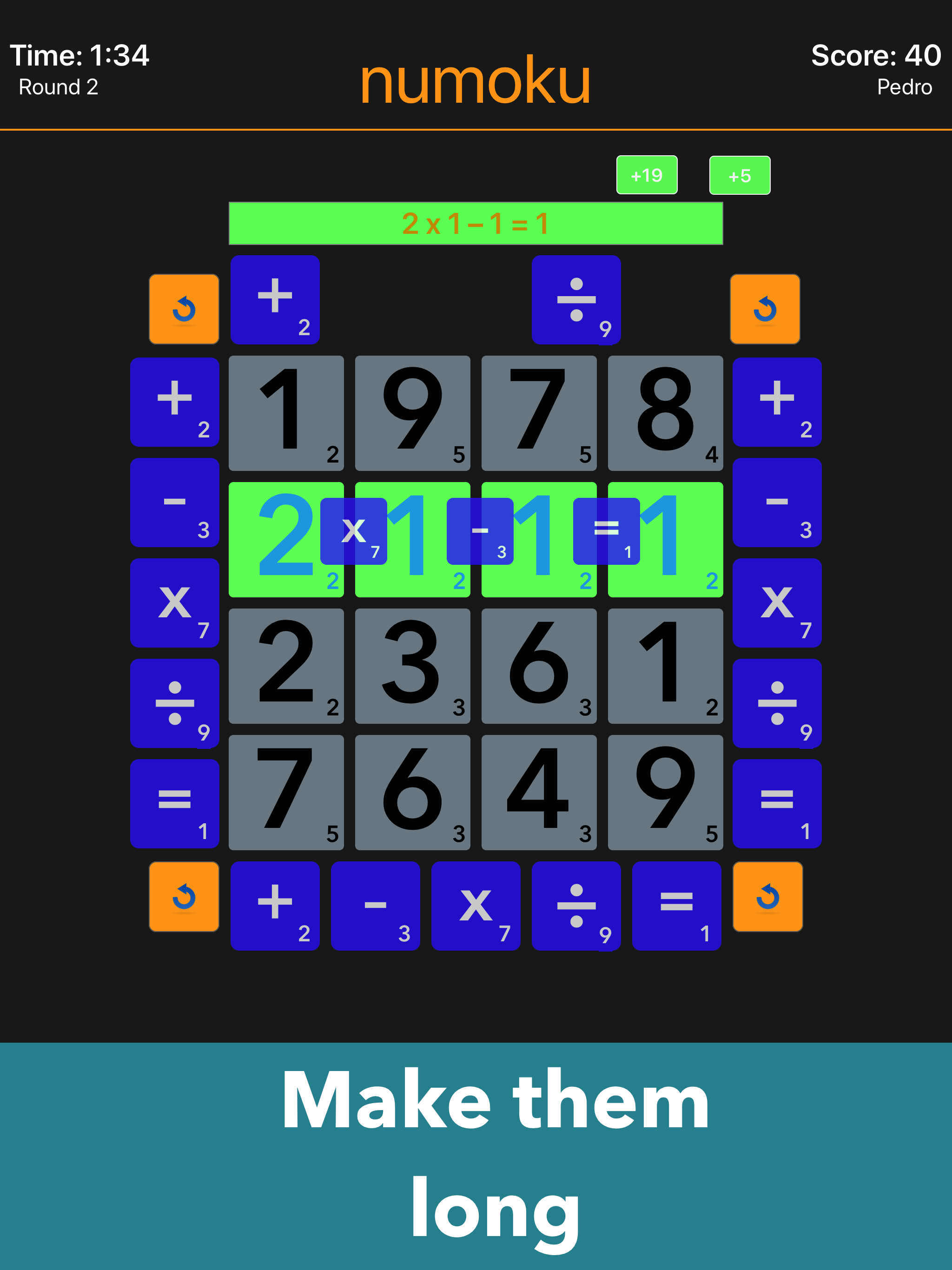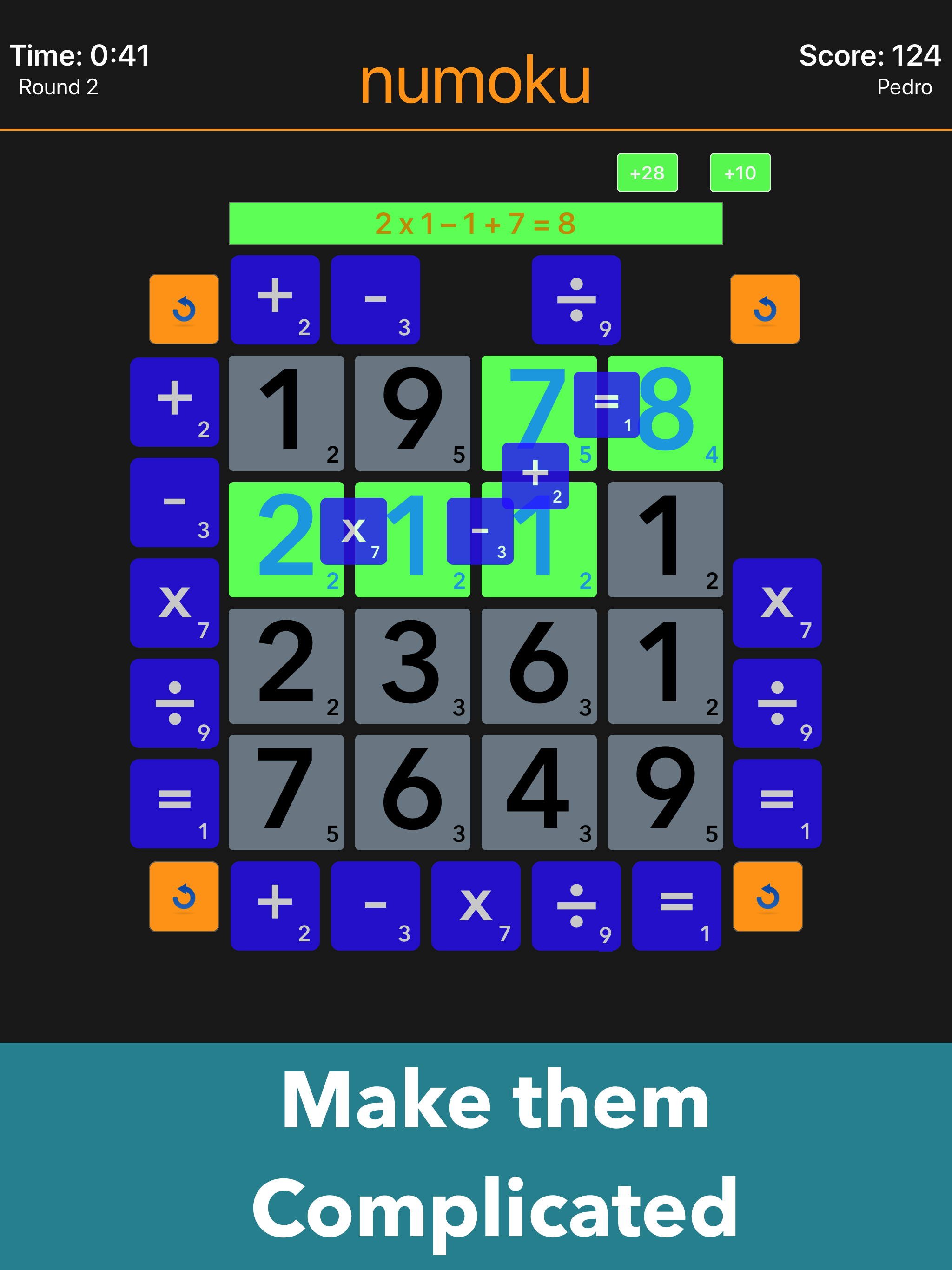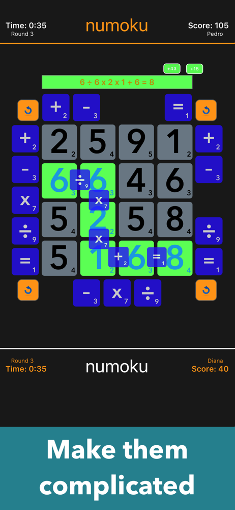 numoku is a fast-paced math game where you race to discover as many equations as possible in two minutes. Earn bonus points and awards for length, com...