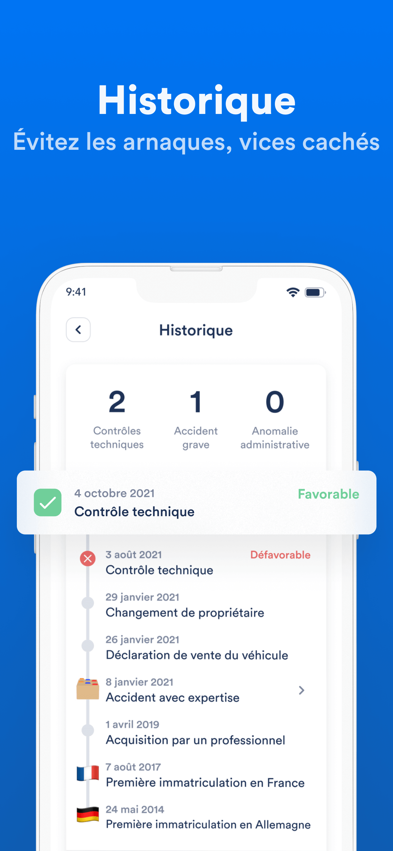 Une application qui devrait devenir officielle tant ses avantages sont importants. Vous commencez par apporter tous les documents prouvant la propriété de votre véhicule, accompagnez les photos de celui-ci, puis faites tous son suivi avec le temps, réparations, entretien, achats, démarches administratives, etc. Lorsque vous faites la cession de votre véhicule, toutes ses données pourront être alors transmises au nouveau propriétaire et attester de toutes les dépenses effectuées mais également justifier d’une éventuelle plus-value. Vous pouvez par la même occasion directement vérifier la courbe du marché de votre véhicule en temps réel, et le + : aucune information à entrer puisque l’application possède l’historique de votre voiture !