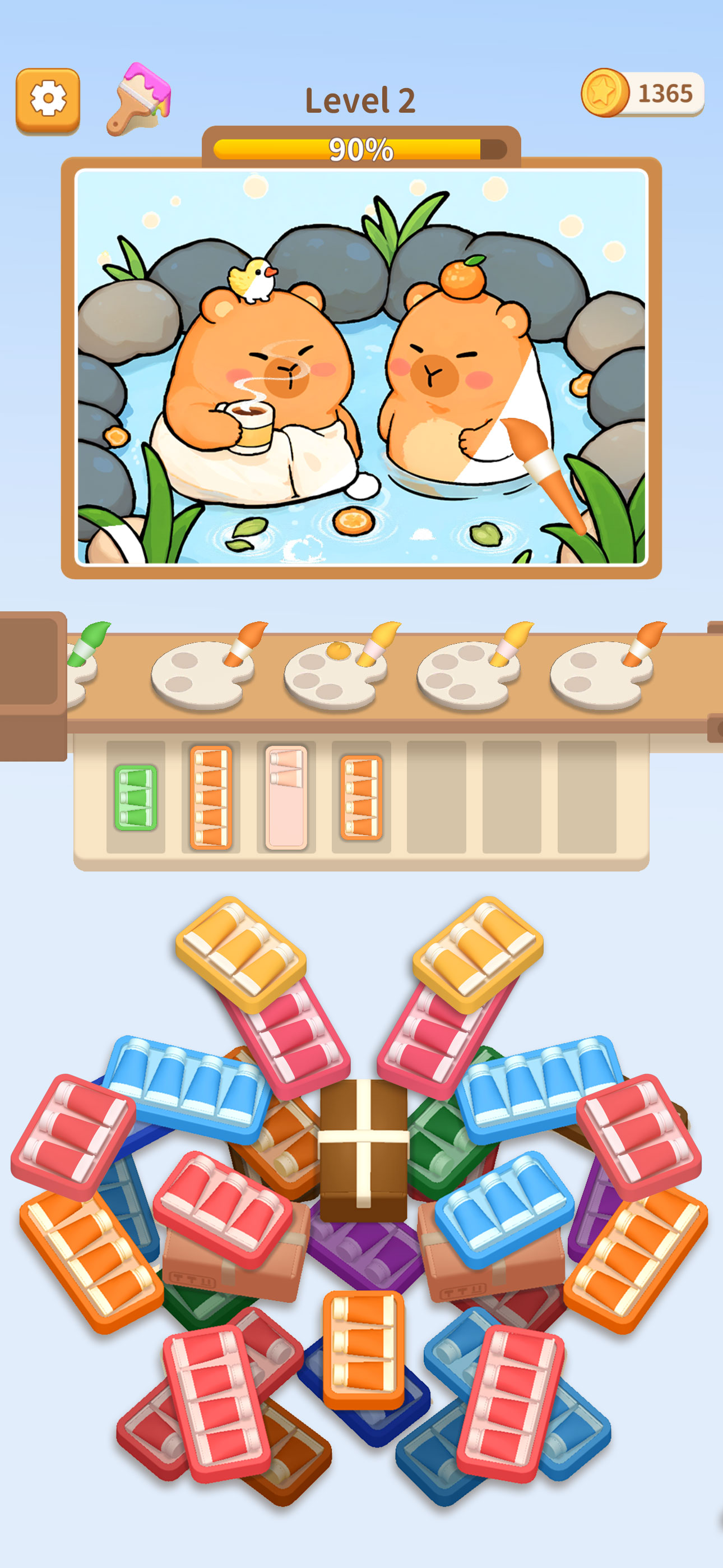 By the time I got to Level 37 it stopped working. It would show a different picture then show the capybaras bathing. Iโd pick a color that corresponds and it will not disappear after filling. Even tried to restart my phone or start over the game and they did not help. It was fun while it lasted. Iโll have to uninstall.
