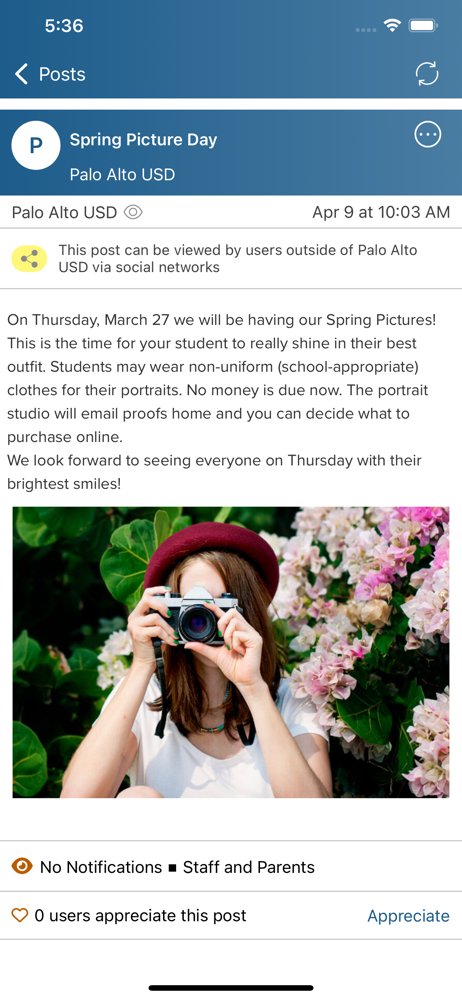 I appreciate this app. It notifies me when there’s a message from the school and makes it easy to find important information.