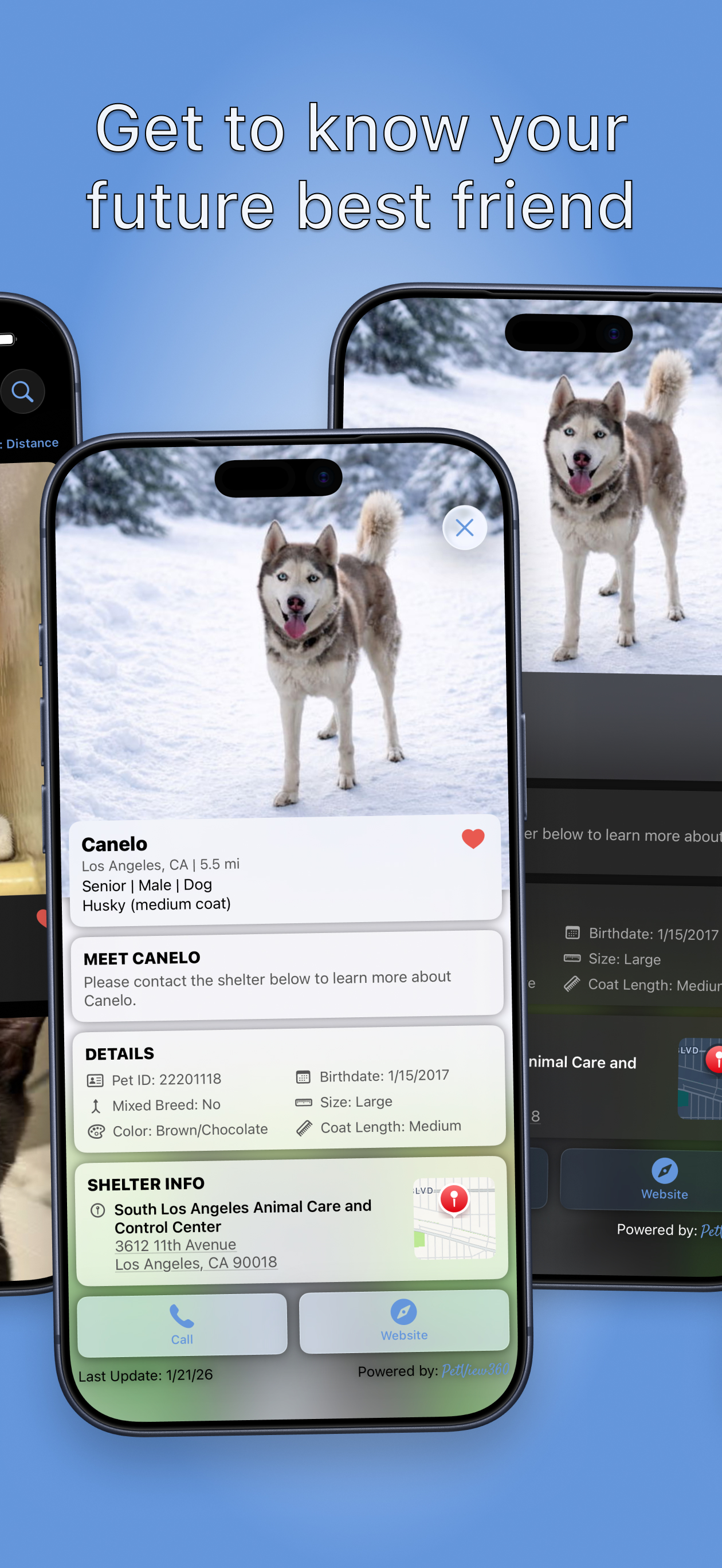PetView360 is a free pet adoption app to help sheltered animals find their forever home. With Pet...