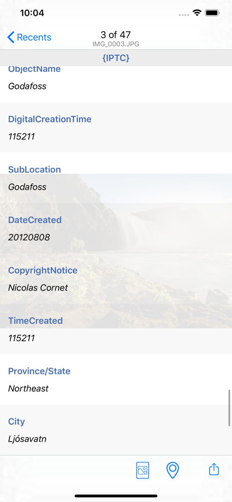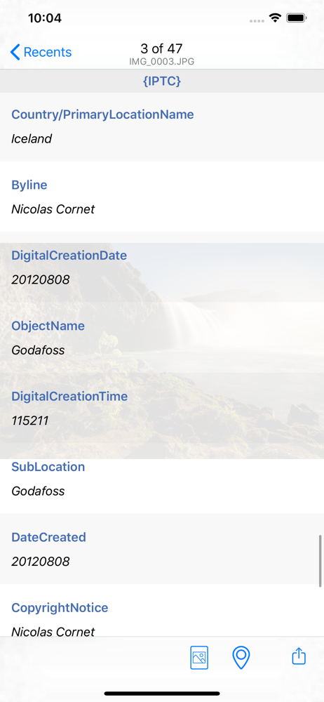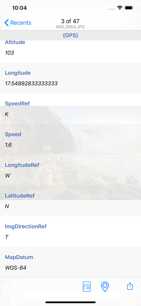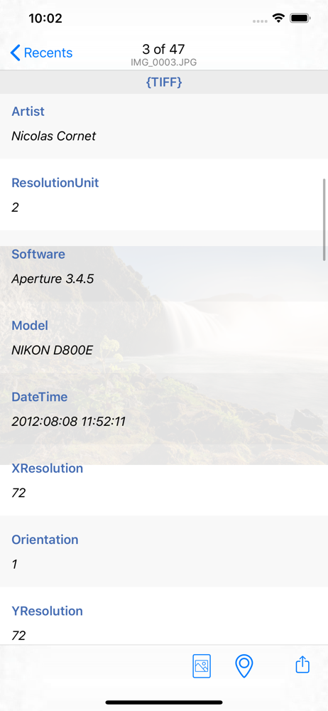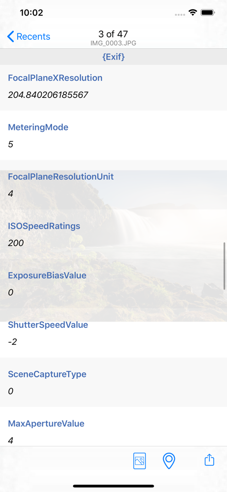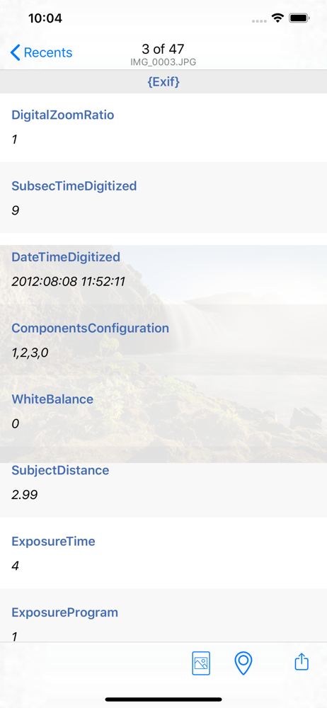View all metadata information from your pictures and videos with this app! This app displays all metadata contained within the photo or video, regard...