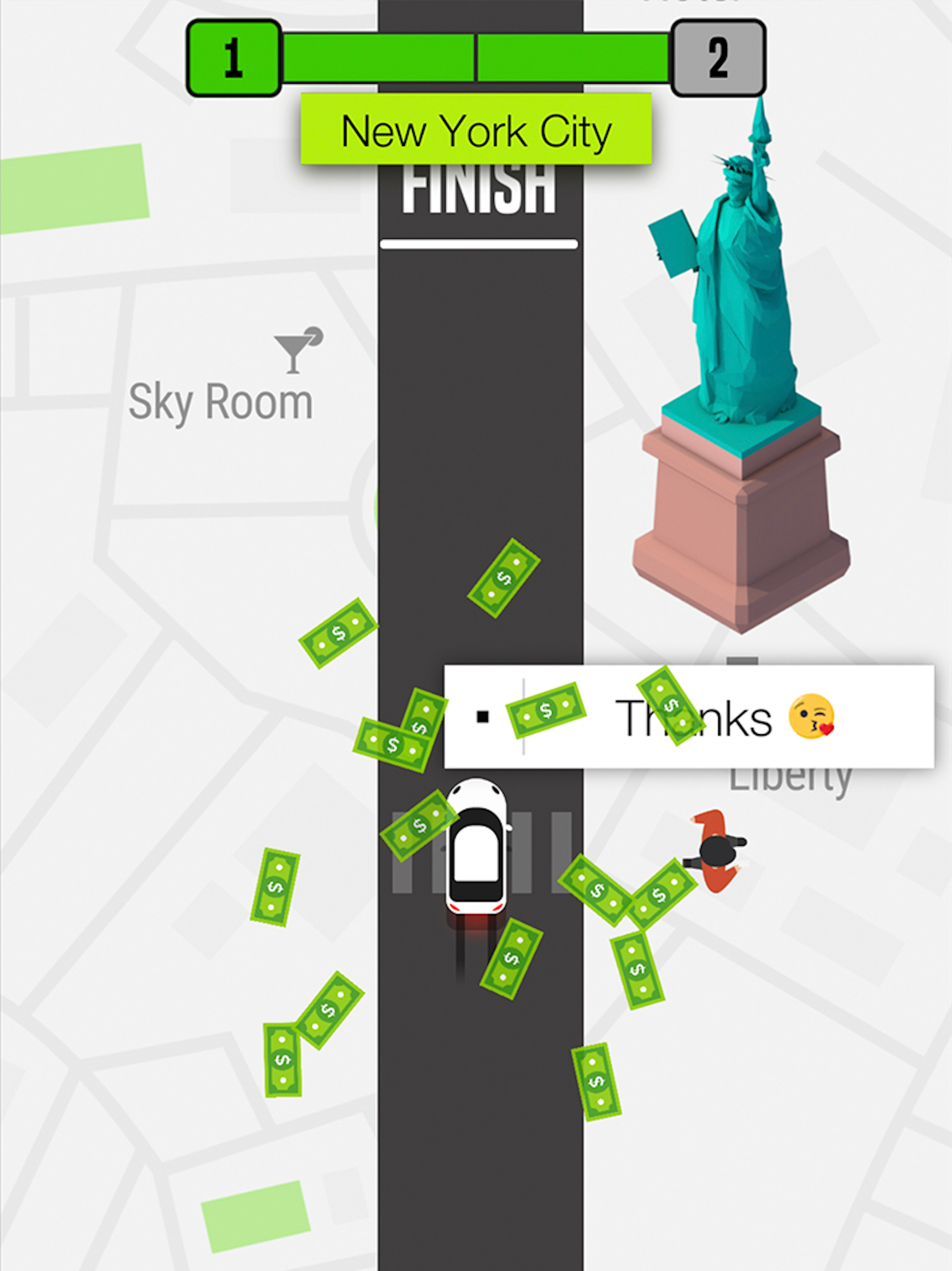 This app is very fun and addictive, but this game can use some recommendations. -Reviews: The things people say in the game when your picking them up is repeated many times like “Hurry up! I’m late!” or “I need a ride!” is repeated for me and when the people get off the car, they should have different reviews like some bad reviews like “Too Speedy!” or “Your bad at driving!” and good ones like “Well done!” or “Good job!”. -Achievements: This game is fun, but there is some things we wish where added like achievements like “Crash into a police car two times” or “get a passenger to the same destination 10 times” because I feel we need to look out for stuff. -Animals: I want the streets to look more detailed like adding animals and trying not to crash into them either. Like the creators should add elephants or horses, pigs and birds, stuff like that. -Roads: I think we need to get the chance to decorate our roads, so I think the creators should add some different roads that cost cash you earn and I don’t know if it is possible, correct me if I am wrong but I think we should be able to go on the upper roads and not stay on the lower roads -Cities: I think there should be different cities for every 1 level and not every 10 levels. I think that is all I have and as I said this game is pretty addicting and fun to play. The creators did a good job.