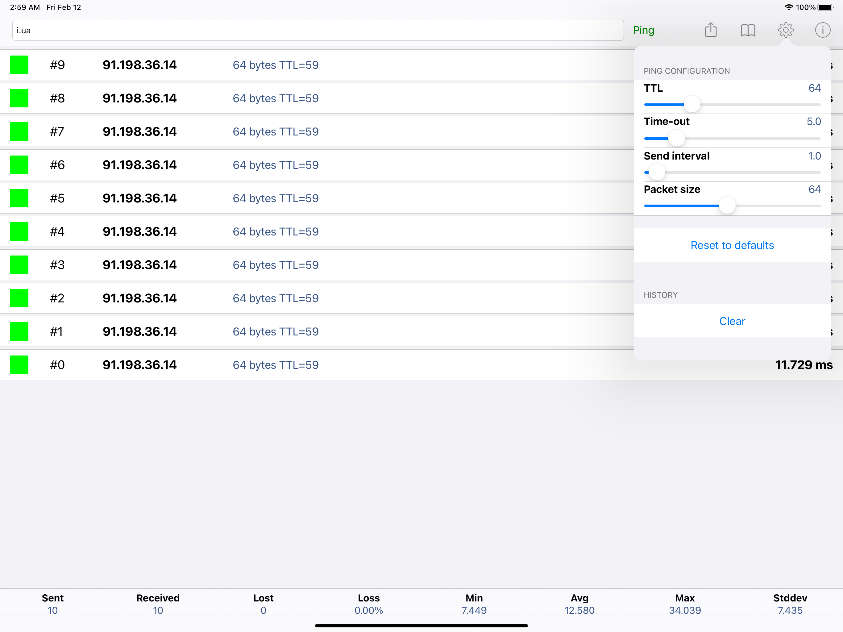 The good: This is a fully functional version of ping, with easy to set parameters. The imperfect: the time cutoff isn't perfect. (It allows some packets over the time cutoff into the statistics, though they are correctly counted as dropped by the time cutoff.) It would be nice if it retained the lasted used target hostname between uses, but not a big detail, as it does save the host, and a few letters get you to where you want. The bad: nothing of note. I don't have any trouble with sliders for parameters, though other reviewers have reported challenges using the sliders. It has been invaluable in diagnosing network issues with AT&T's hardware, enabling me to diagnose the location of their issues. (30-50% packet loss on an AT&T ADSL line helps explain a dysfunctional connection.) Highly recommended.