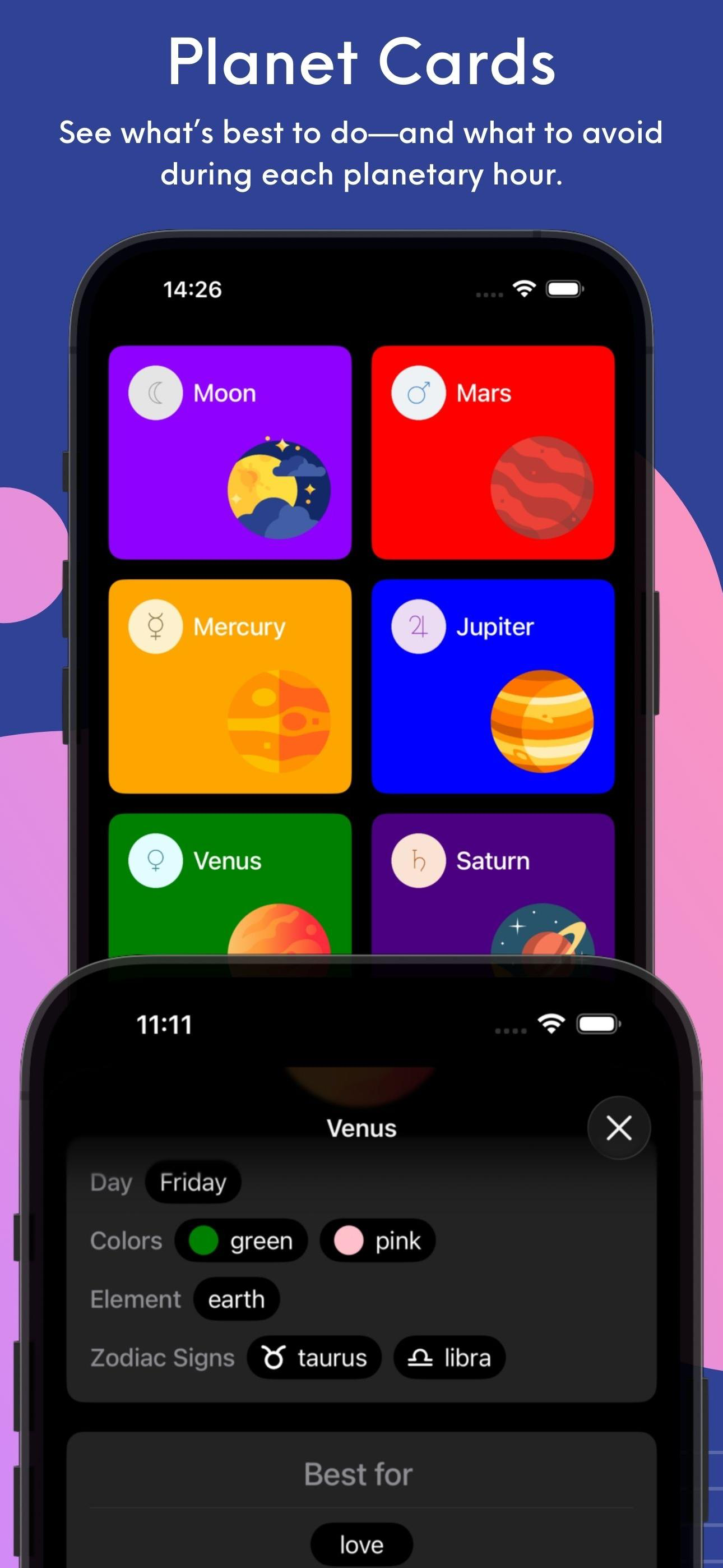 Best planetary hours app there is! Simple, yet it has everything you need, to know when a planetary hour is, will be, or has been. And there’s a lot of stuff under the hood. I’ve been using it for the past few years and the widgets are GREAT! I’ve tried several of the alternatives, and trust me, this one is the one I find myself reaching for when I need to plan.