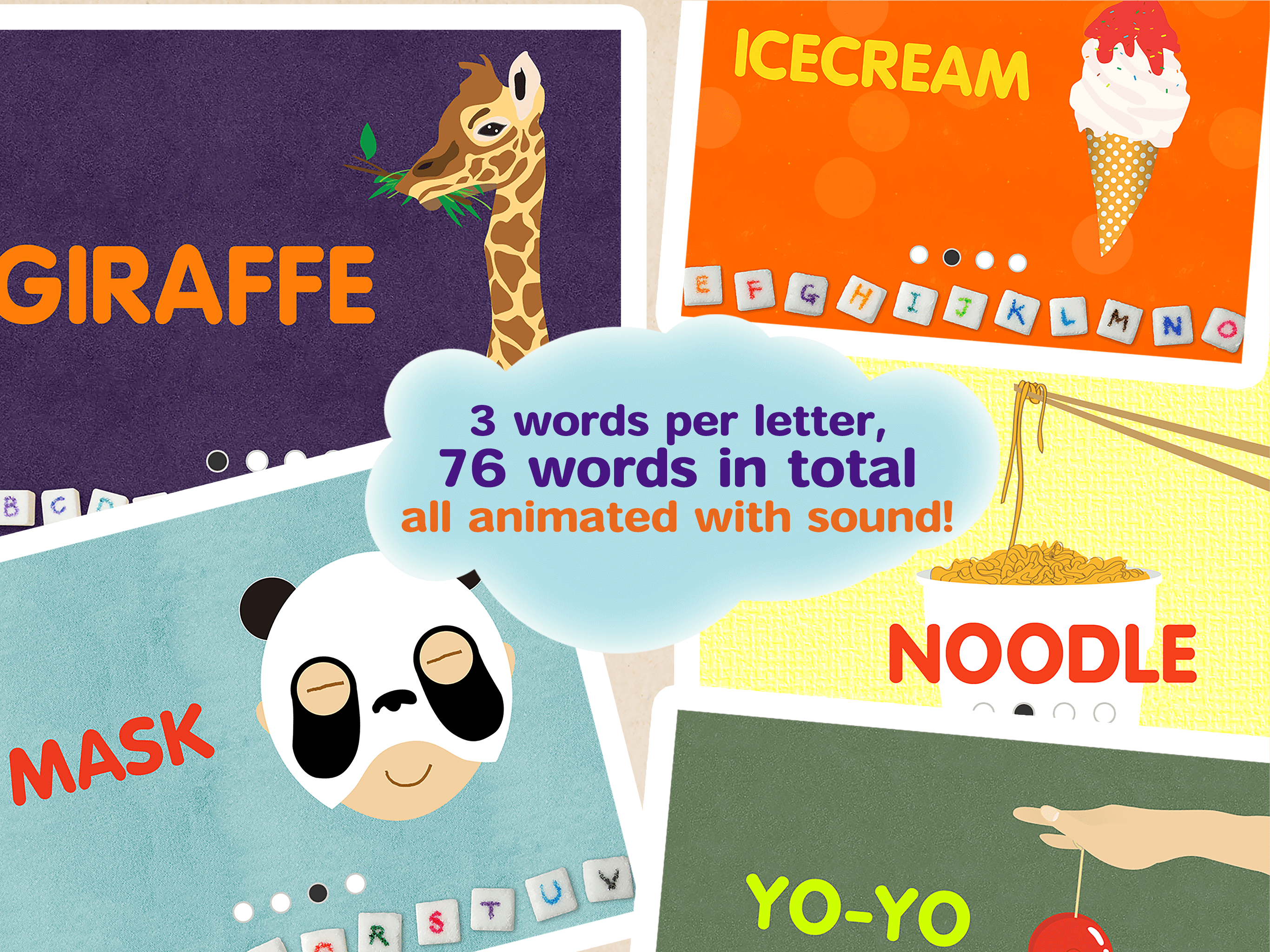 This entire app is so artistically appealing. Images are beautiful and sounds are very friendly. The voice which accompanies user through the entire application speaks very creatively and thoughtfully. This is an application that can teach young children alphabets in very friendly way. I recommend this application strongly. This app teaches how to read and how to write each alphabet clearly. Children would be able to learn so many words. It is so simple and so friendly that it is a must have application for all children!