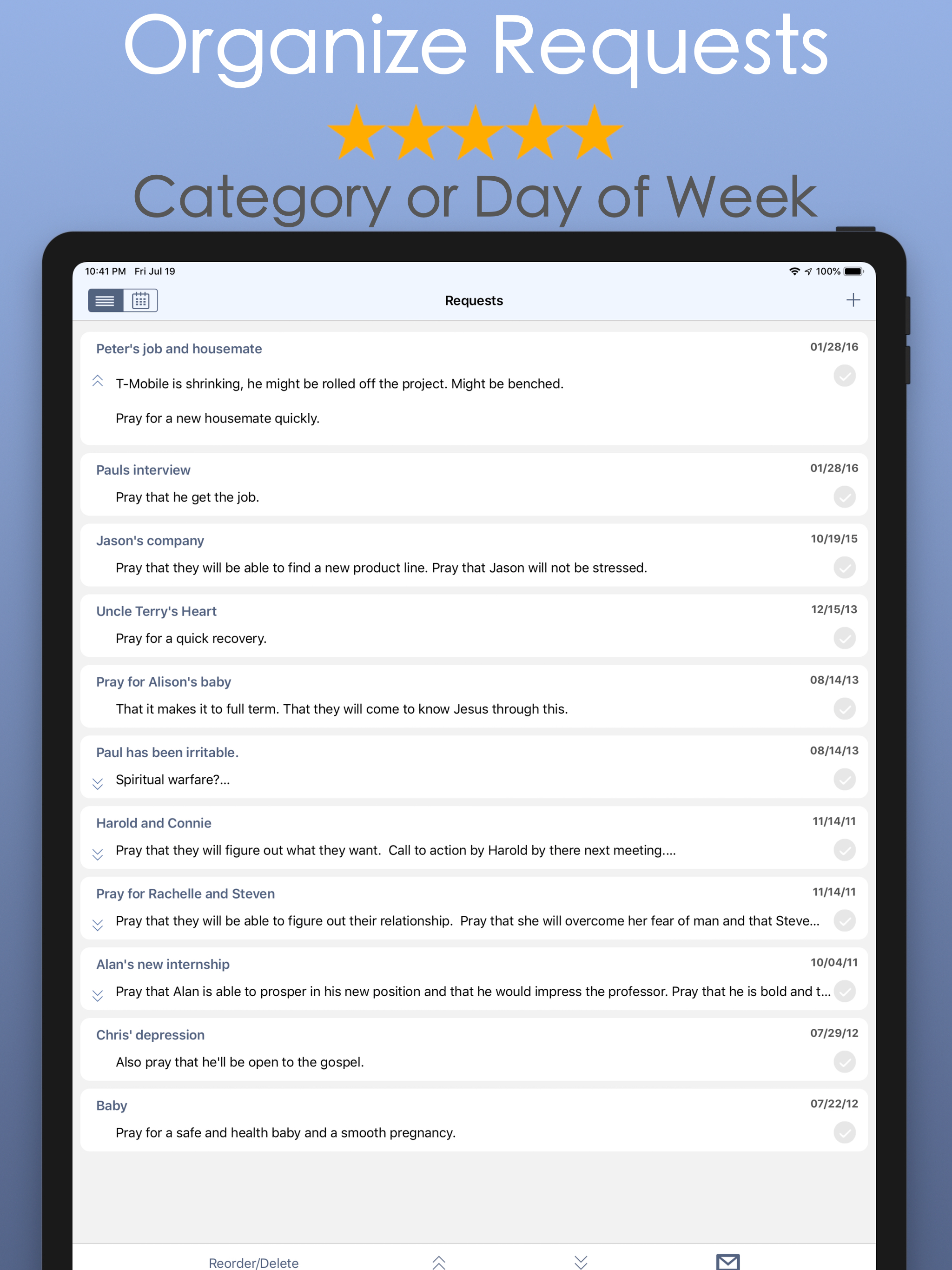 I have been more consistent, more focused, more thorough, & more diligent in prayer since I have been more consistent, more focused, more thorough, & more diligent in prayer since using this app. It has become an essential part of my personal worship service to others, both saved and unsaved. I can add requests anywhere I am as I always have my phone with me. At this point, I can’t face the day without using this app! sing this app. It has become an essential part of my personal worship service to others, both saved and unsaved. I can add requests anywhere I am as I always have my phone with me. At this point, I can’t face the day without using this app!