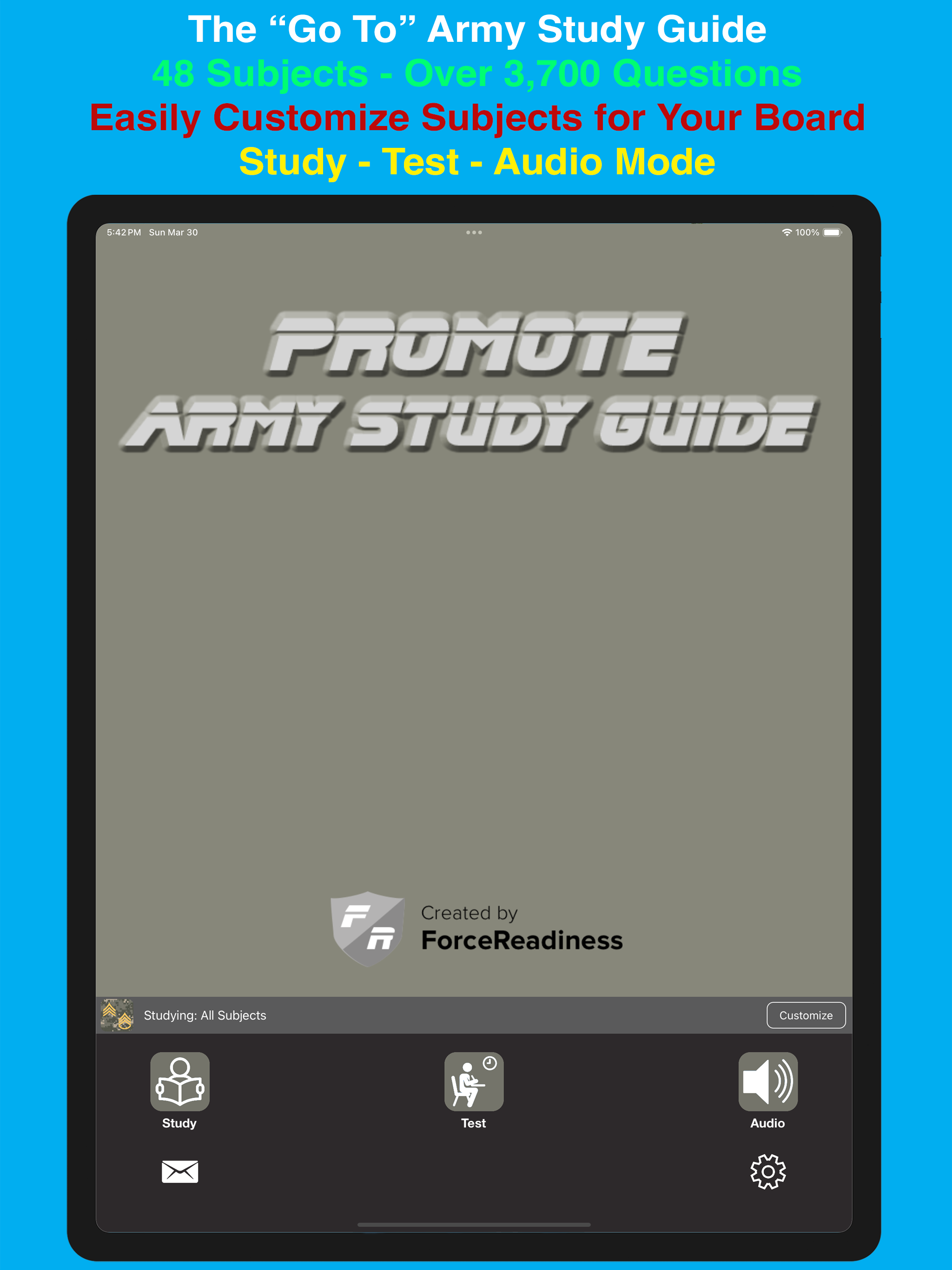 This app is great. It provides all of the knowledge and know how that any wanting NCO or Leader needs to be successful. One thing i will say that needs to be added, is an audiobook. I say, this because there are different learning styles. Some people excel at reading and learning material. Others are hands on learners. Others are Auditory learners. I will admit that i am one of those auditory learners, and that sitting down and reading the material for hours on in, sometimes minutes, pose a challenge for me, and any one else who wishes to learn. I am a SPC, whose primary zone is in 2 months. While it may be too late for me, it may not be for another person. I really want to become a knowledgeable and relatable leader. If this can be one advancement for the app, it would be worth it for those who have different learning styles.