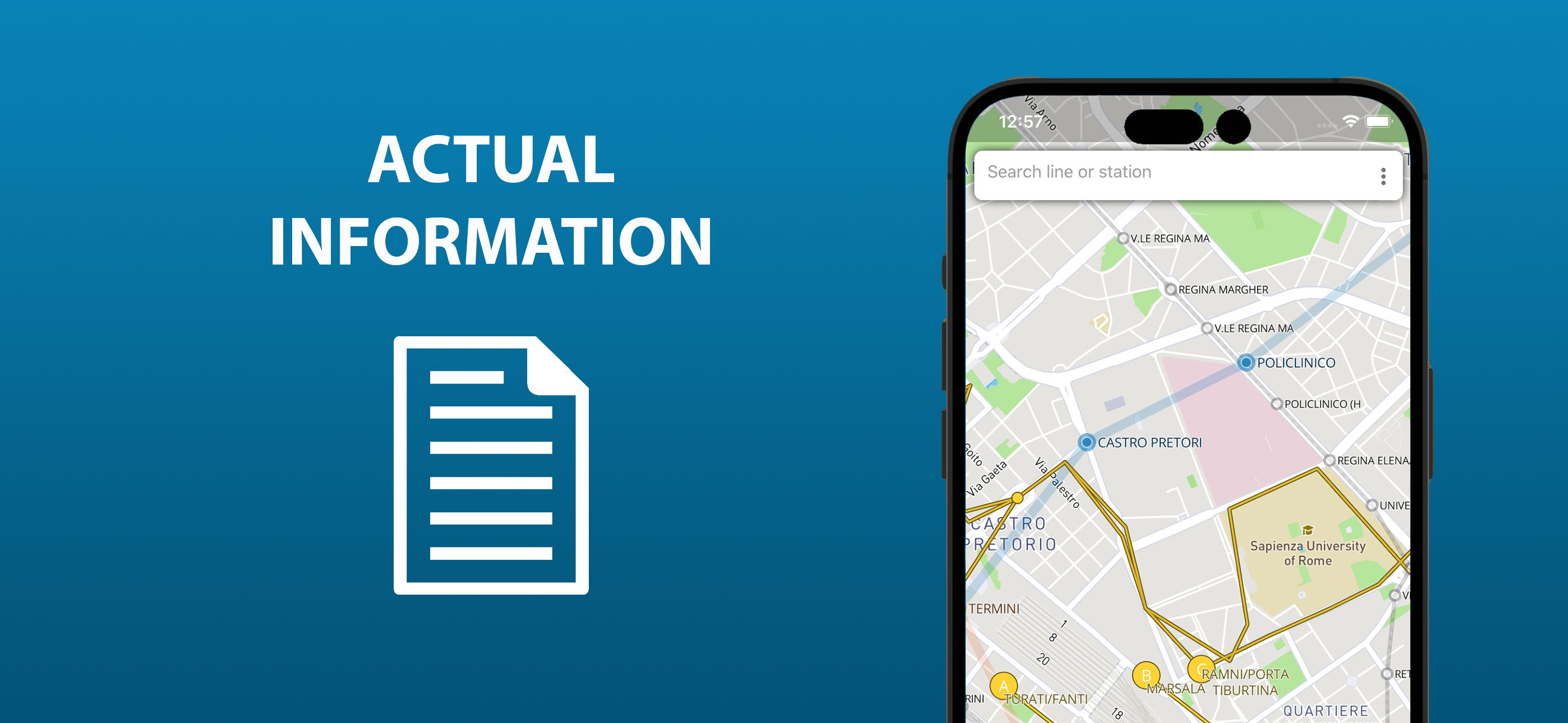The entire Rome's transport infrastructure of in one app. Metro lines, trams and buses routes, transfer stations - all of those you will find inside....