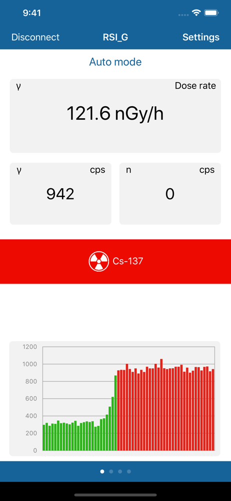 RadMobile app displays real-time radiation measurement information from gamma-ray and neutron detectors of directly connected RSI devices through Wi-F...